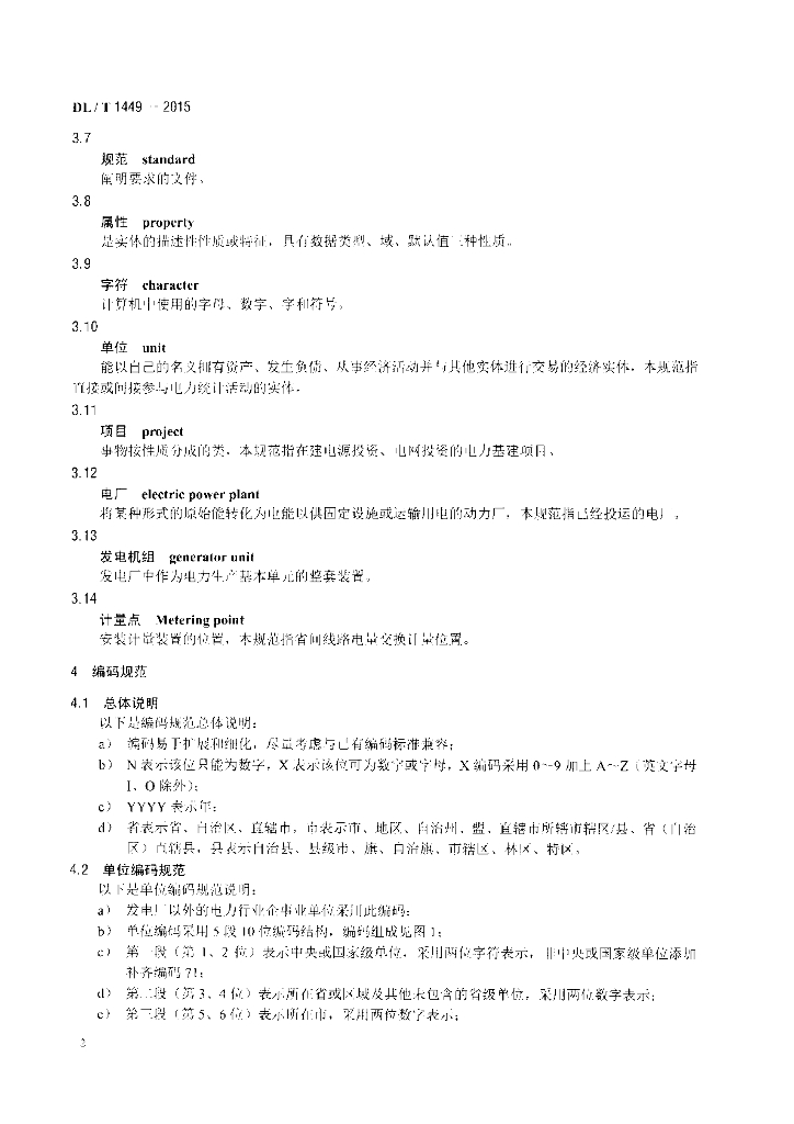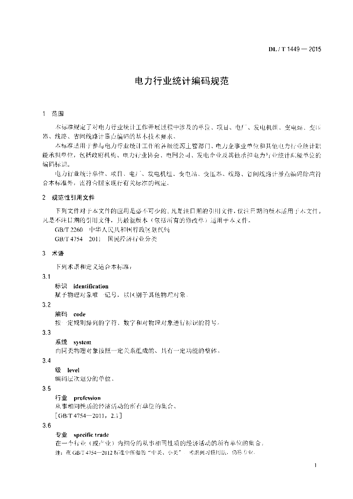 DL/T 1449-2015 电力行业统计编码规范