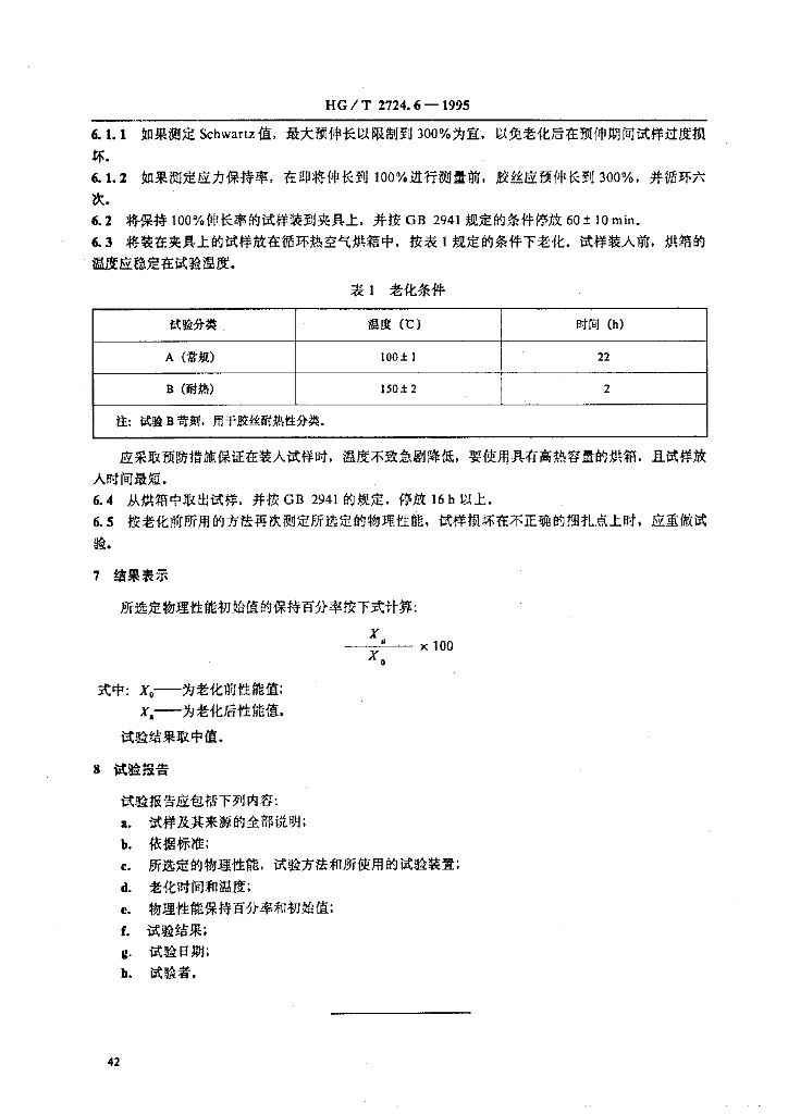 HG/T 2724.6-1995 橡胶胶丝试验方法 耐热老化试验