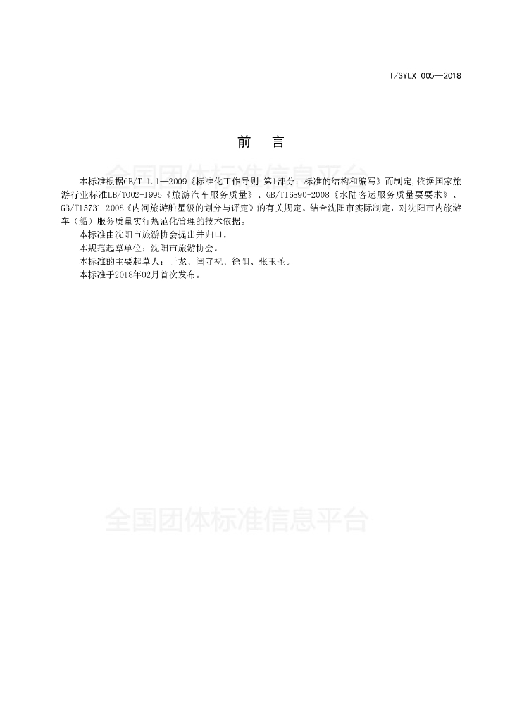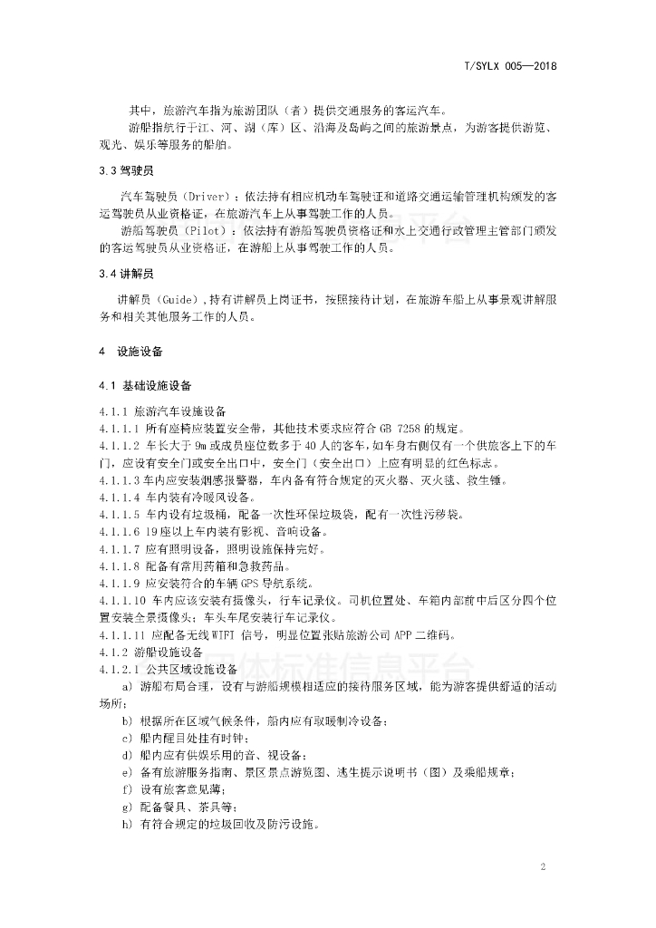 T/SYLX 005-2018 旅游车(船)运营服务规范