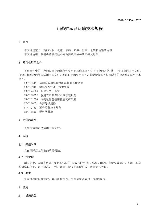 DB41/T 2936-2025 山药贮藏及运输技术规程