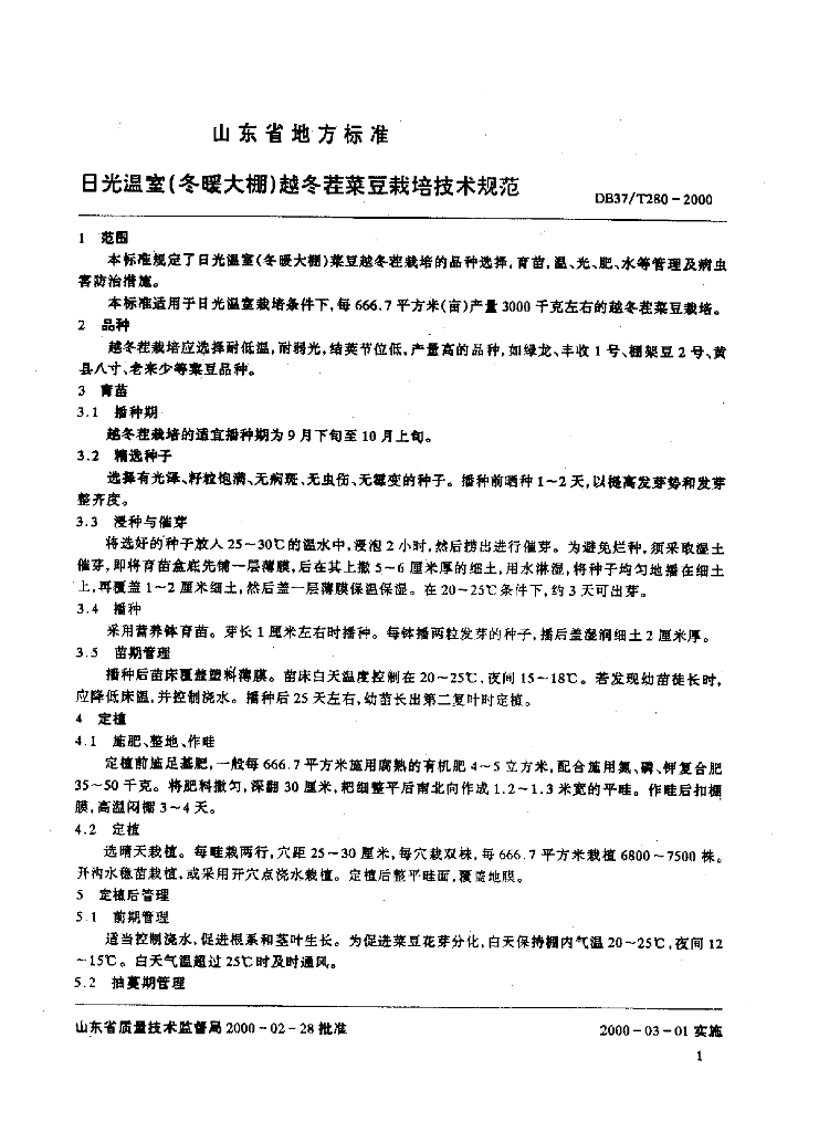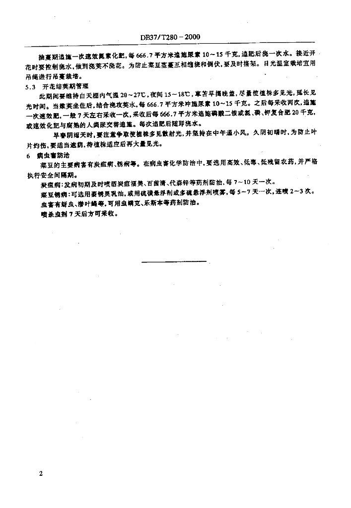 DB37/T 280-2000 日光温室(冬暖大棚)越冬茬菜豆栽培技术规范
