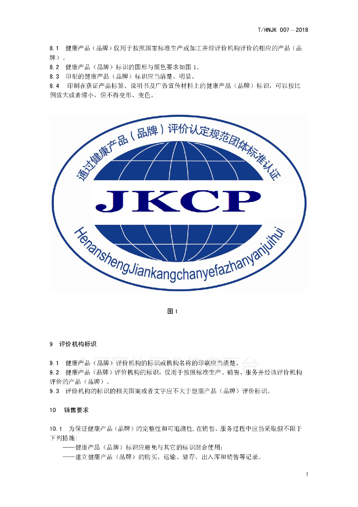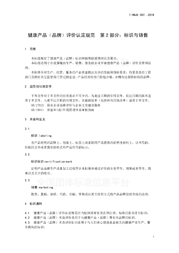 T/HNJK 007-2018 健康产品(品牌)评价认定规范——第2部分:标识与销售.