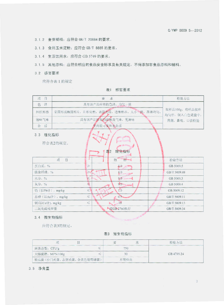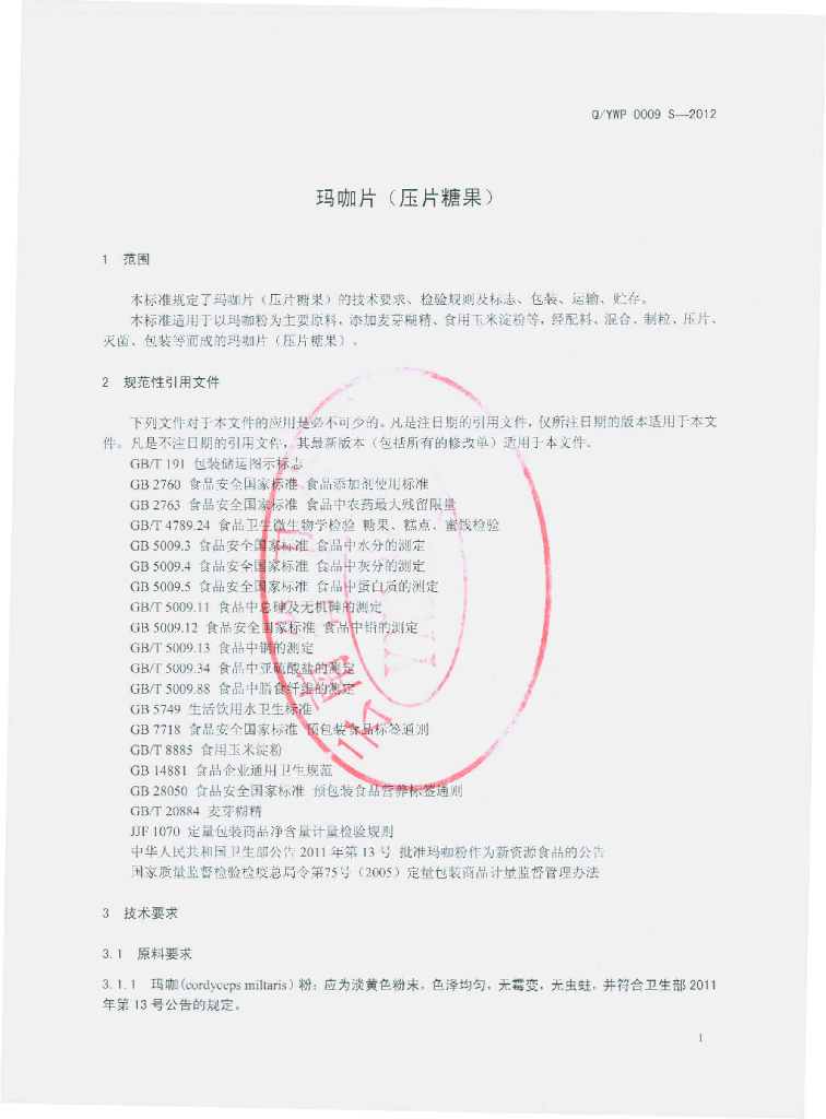 Q/YWP 0009S-2012 玛咖片(压片糖果)