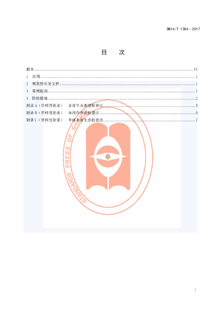 DB14/T 1384-2017 羊主要寄生虫病防控技术规程