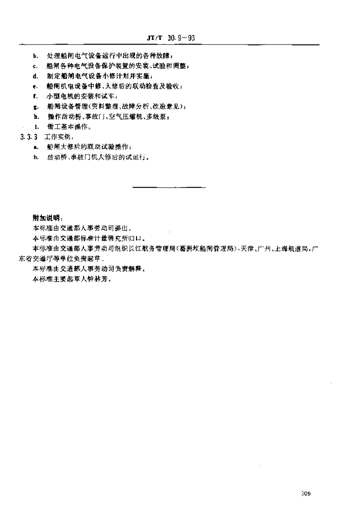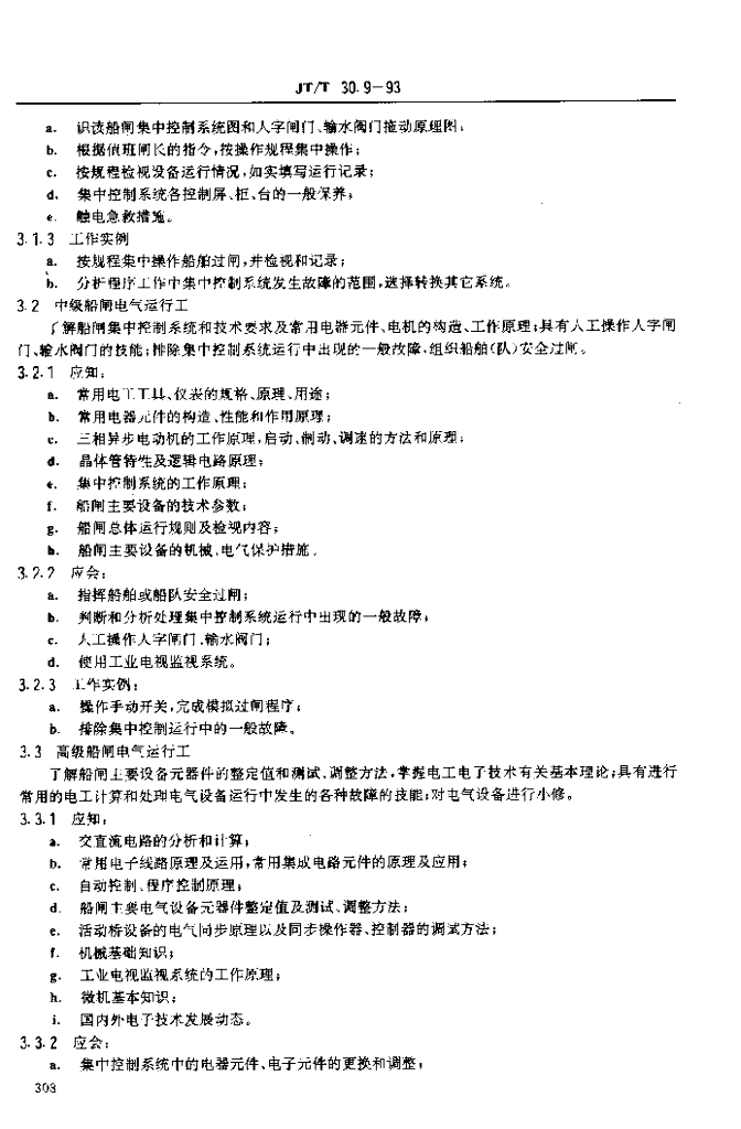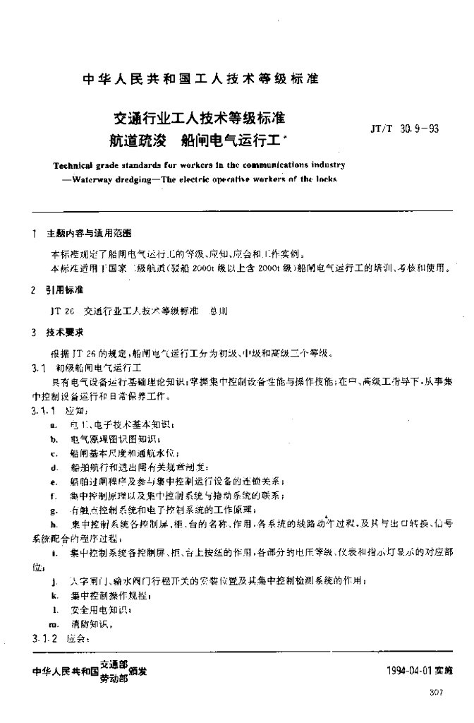JT/T 30.9-1993 交通行业工人技术等级标准航道疏浚船闸电气运行工