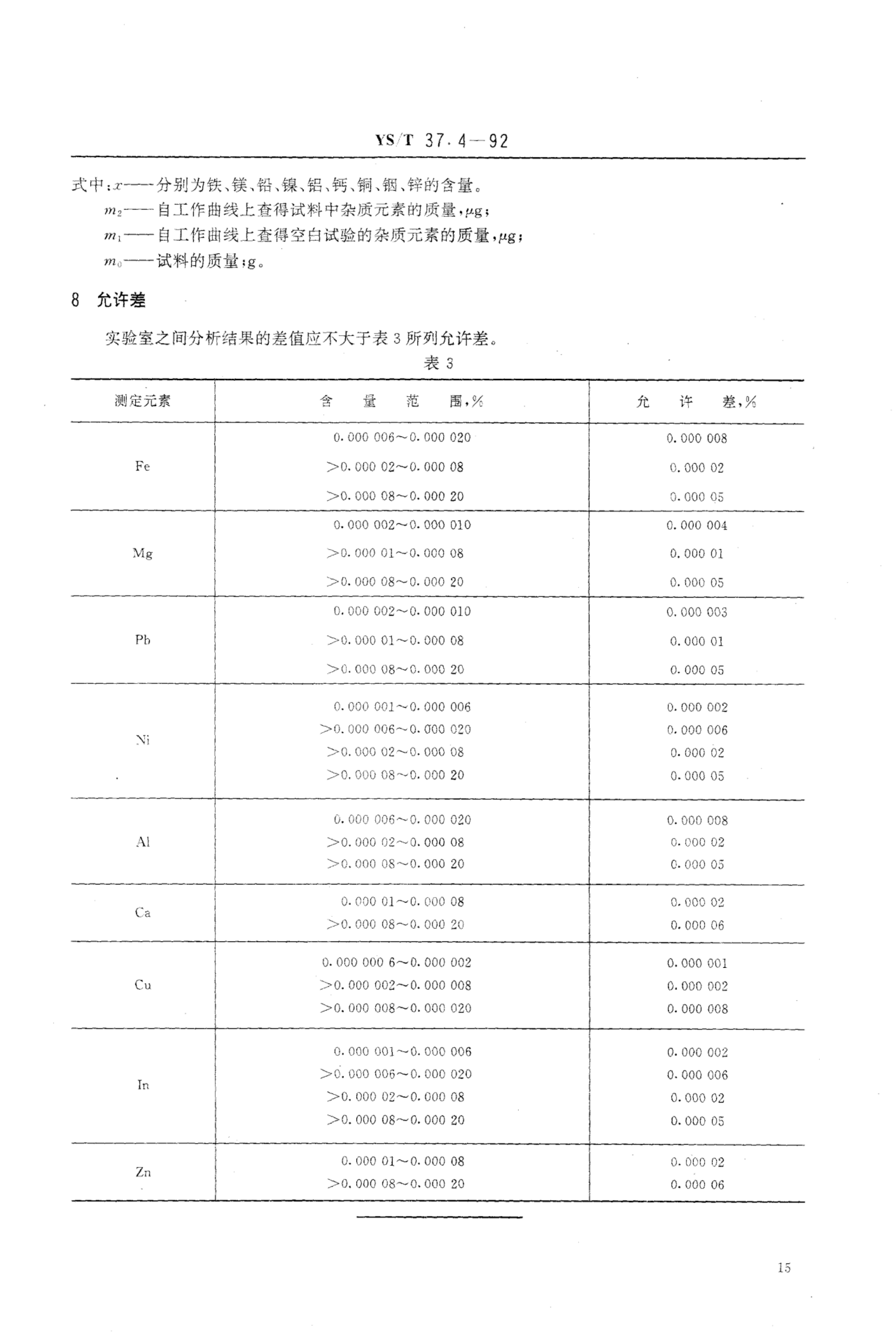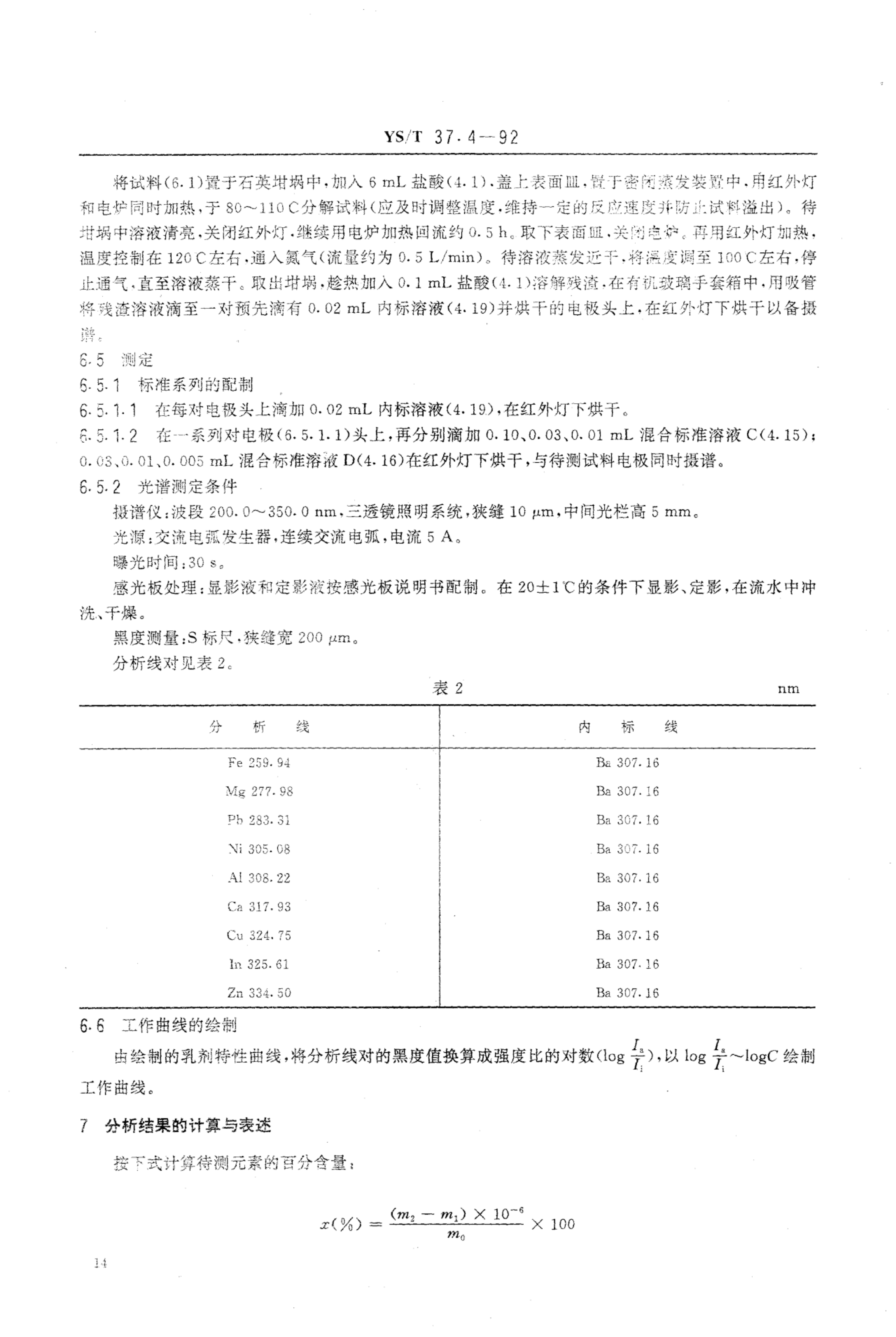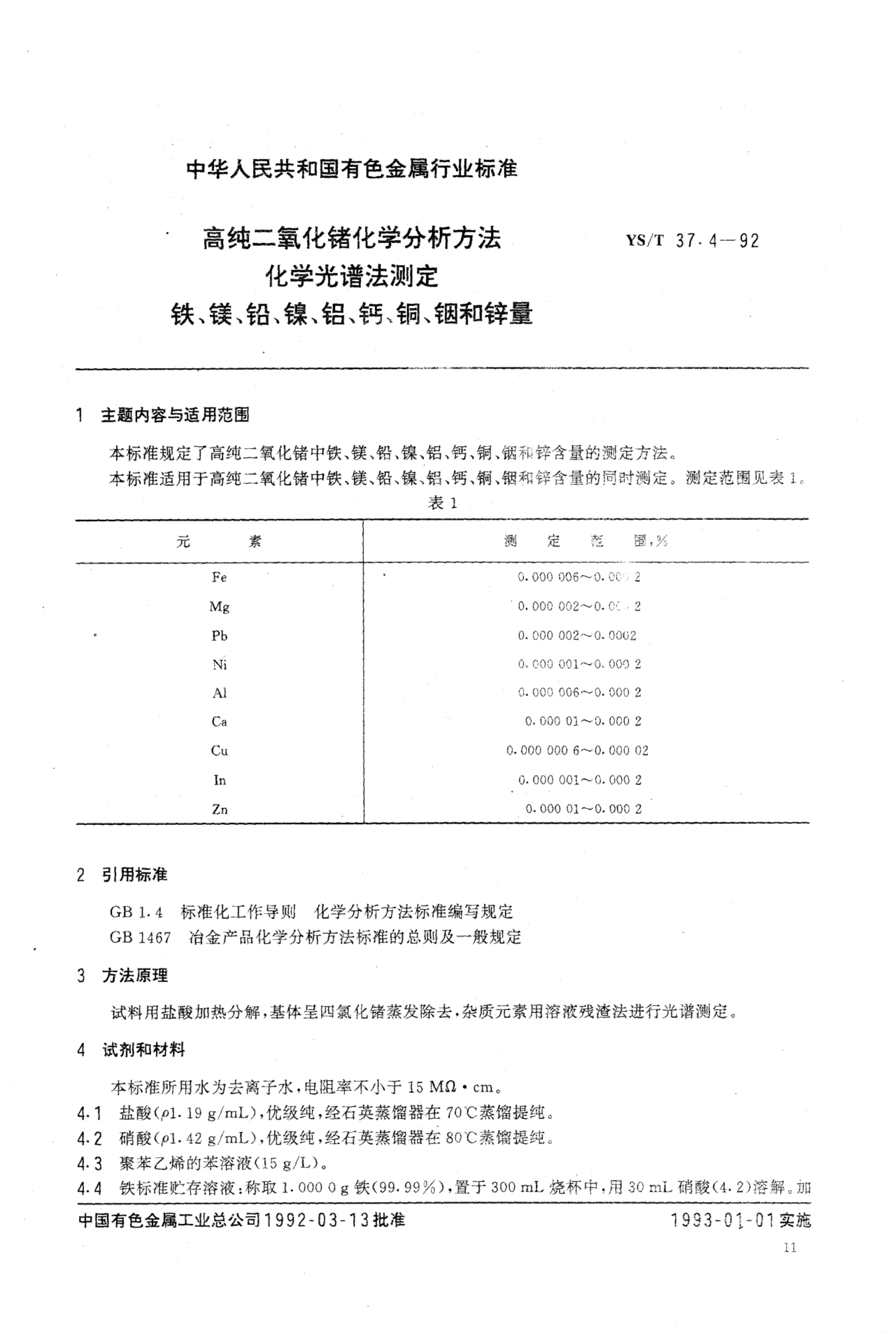 YS/T 37.4-1992 高纯二氧化锗化学分析方法化学光谱法测定铁,镁,铅,镍,铝,钙,铜,铟和锌量