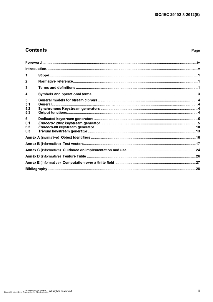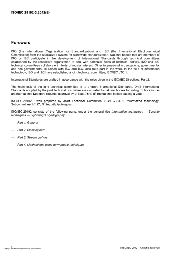 ISO/IEC 29192-3-2012 信息技术 安全技术 轻量加密 第3部分:流密码
