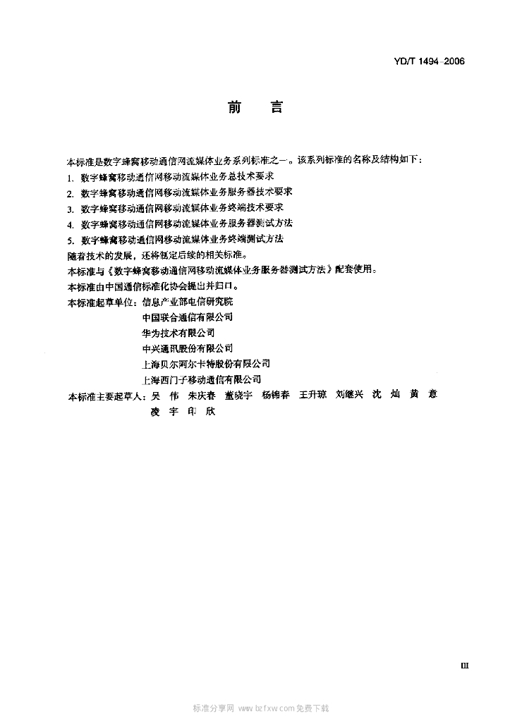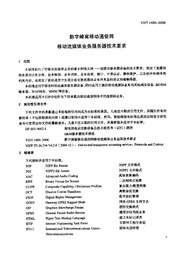 YD/T 1494-2006 数字蜂窝移动通信网移动流媒体业务服务器技术要求