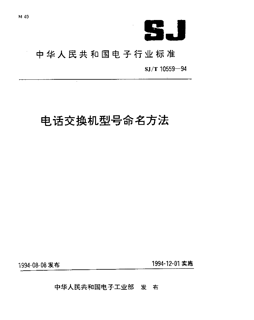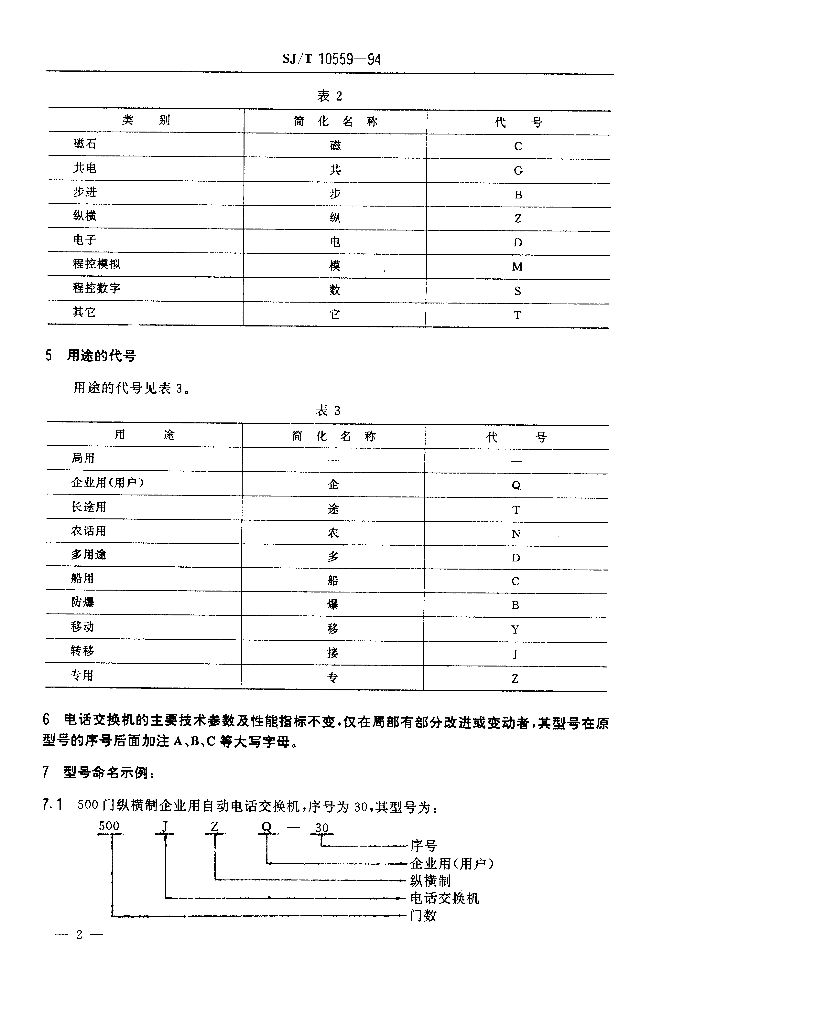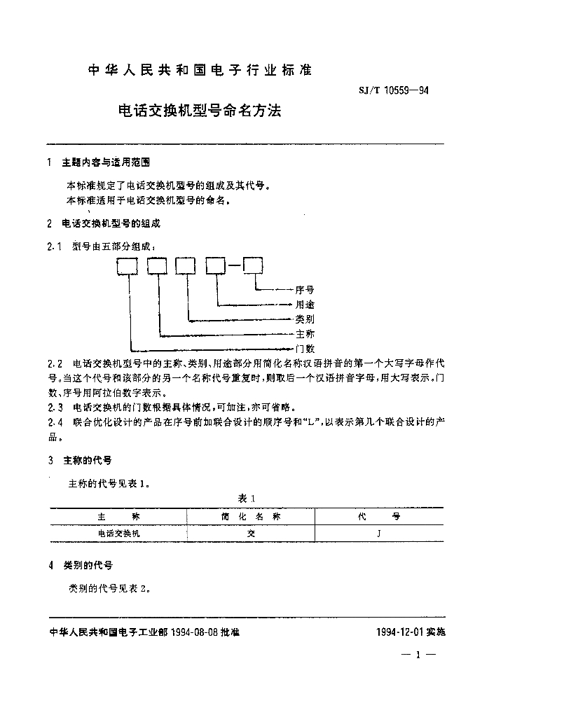 SJ/T 10559-1994 电话交换机型号命名方法