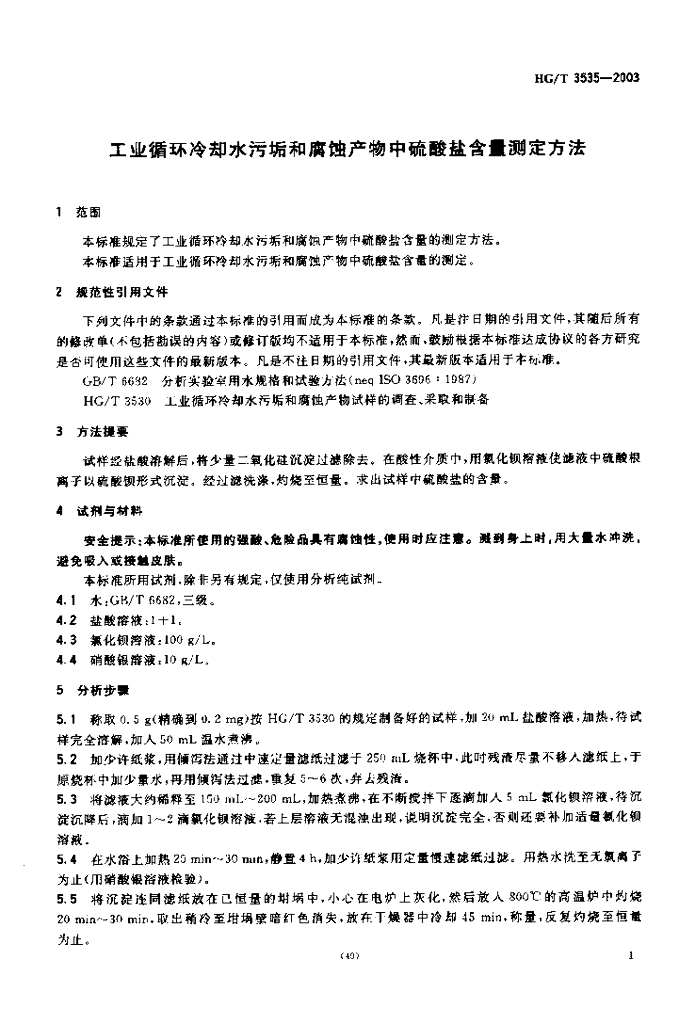 HG/T 3535-2003 工业循环冷却水污垢和腐蚀产物中硫酸盐含量测定方法