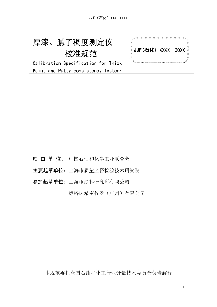 JJF(石化)089-2023 厚漆、腻子稠度测定仪校准规范(报批稿)