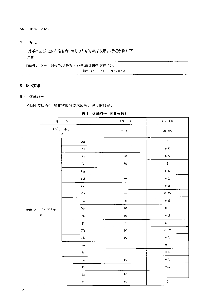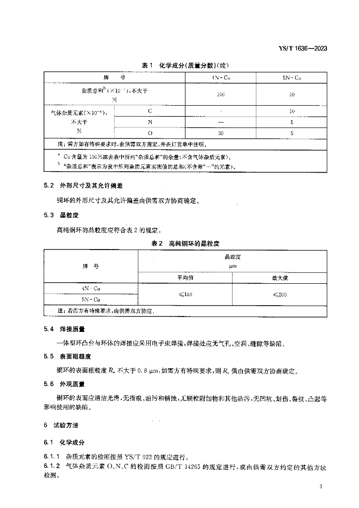 YS/T 1636-2023 电子薄膜用高纯铜环
