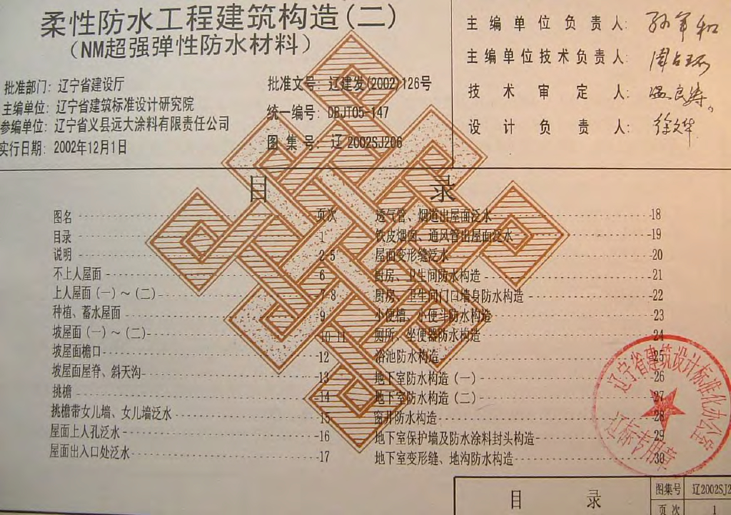 辽2002SJ206 柔性防水工程建筑构造(二)(NM超强弹性防水材料)图集