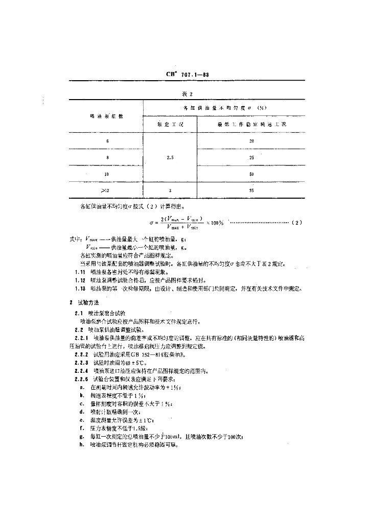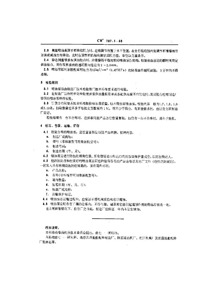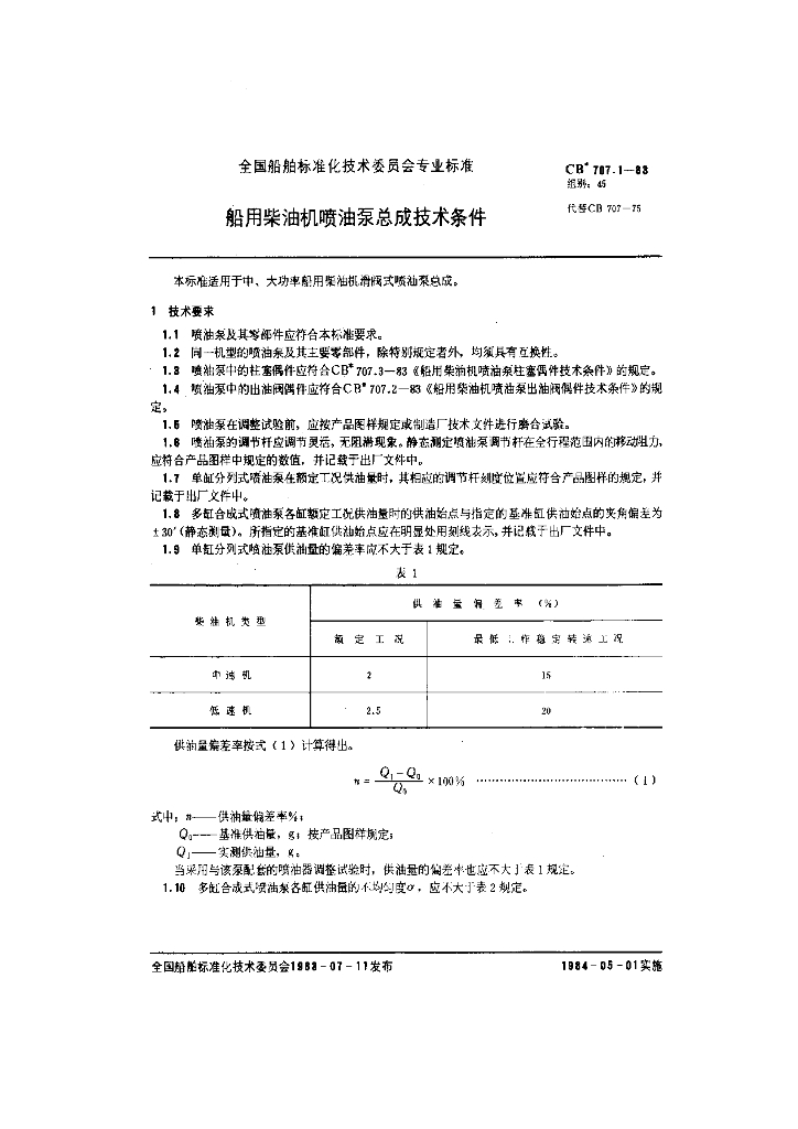 CB 707.1-1983 船用柴油机喷油泵总成技术条件