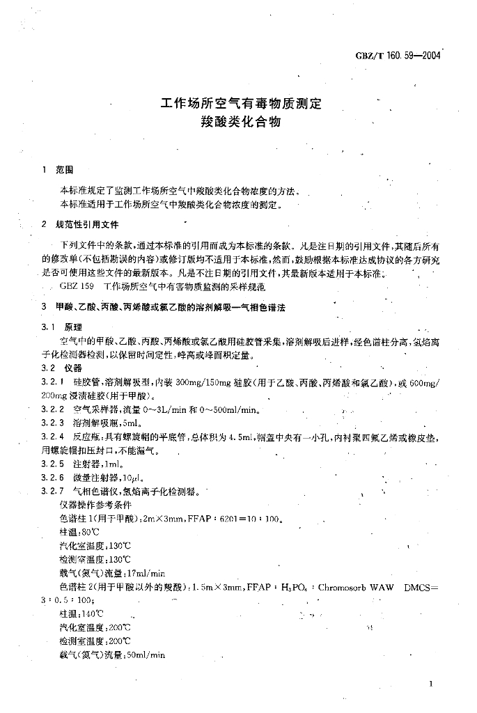 GBZ/T 160.59-2004 工作场所空气有毒物质测定 羧酸类化合物