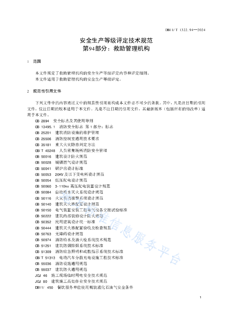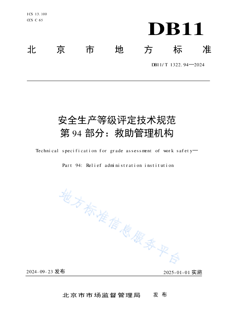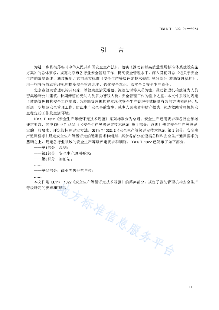 DB11/T 1322.94-2024 安全生产等级评定技术规范 第94部分:救助管理机构