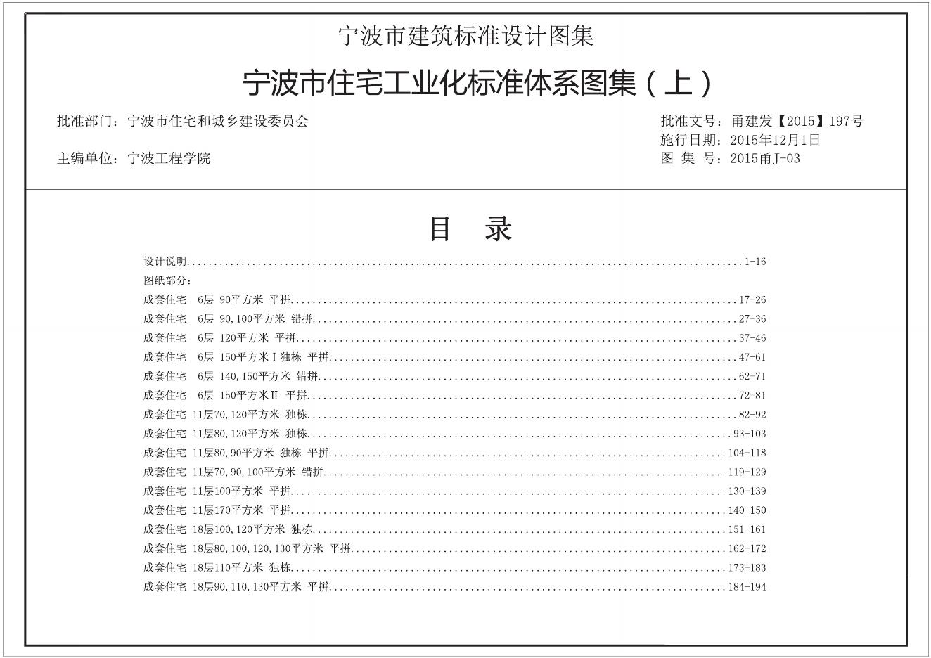 2015甬J-03 宁波市住宅工业化标准体系图集