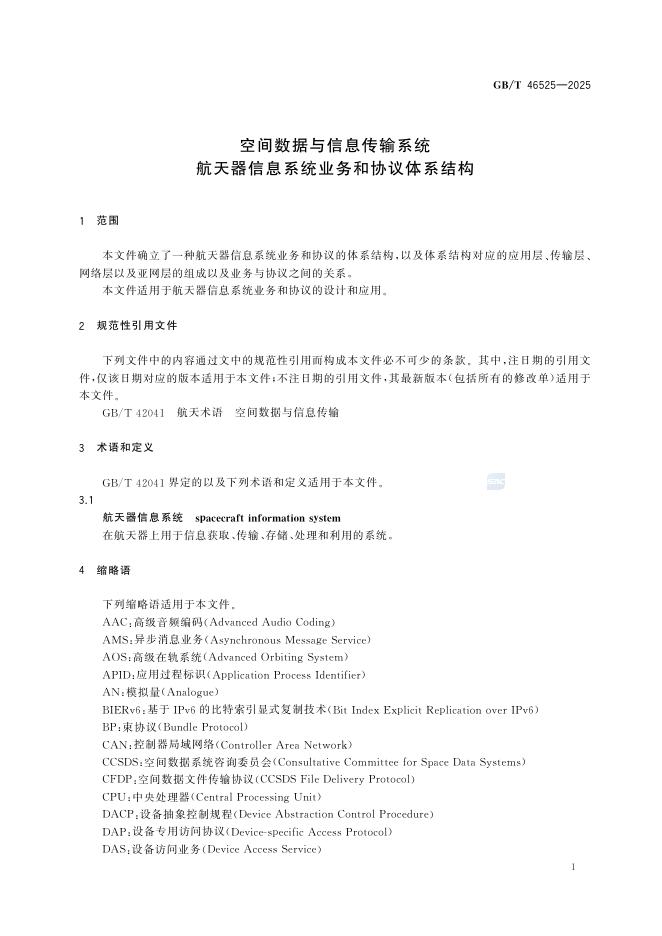 GB/T 46525-2025 空间数据与信息传输系统 航天器信息系统业务和协议体系结构
