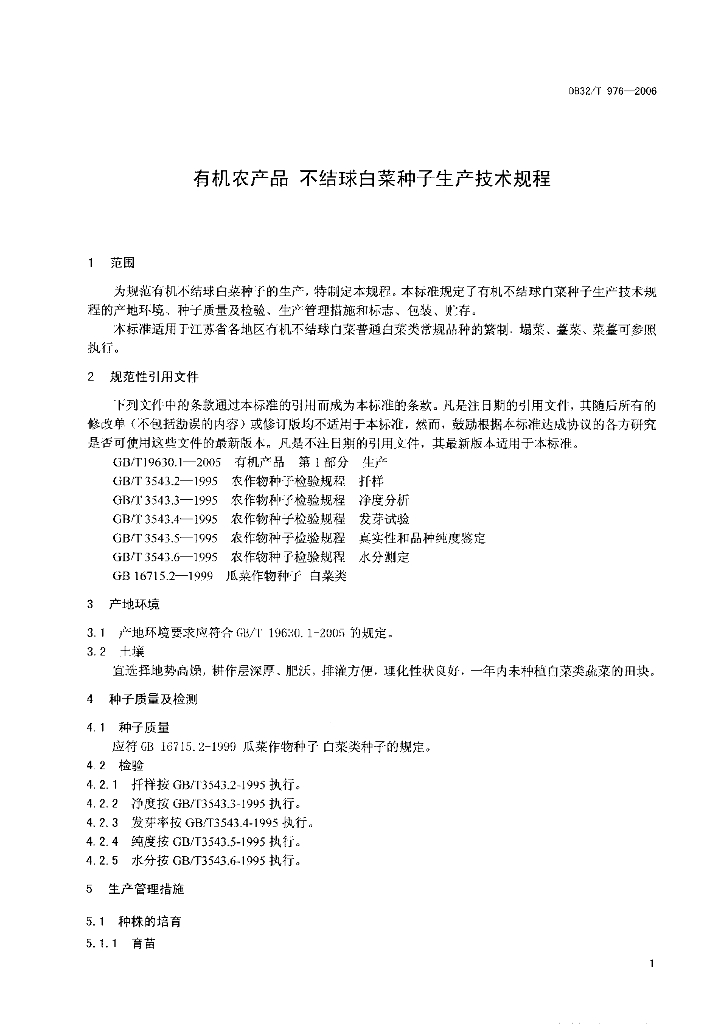 DB32/T 976-2006 有机农产品 不结球白菜种子生产技术规程
