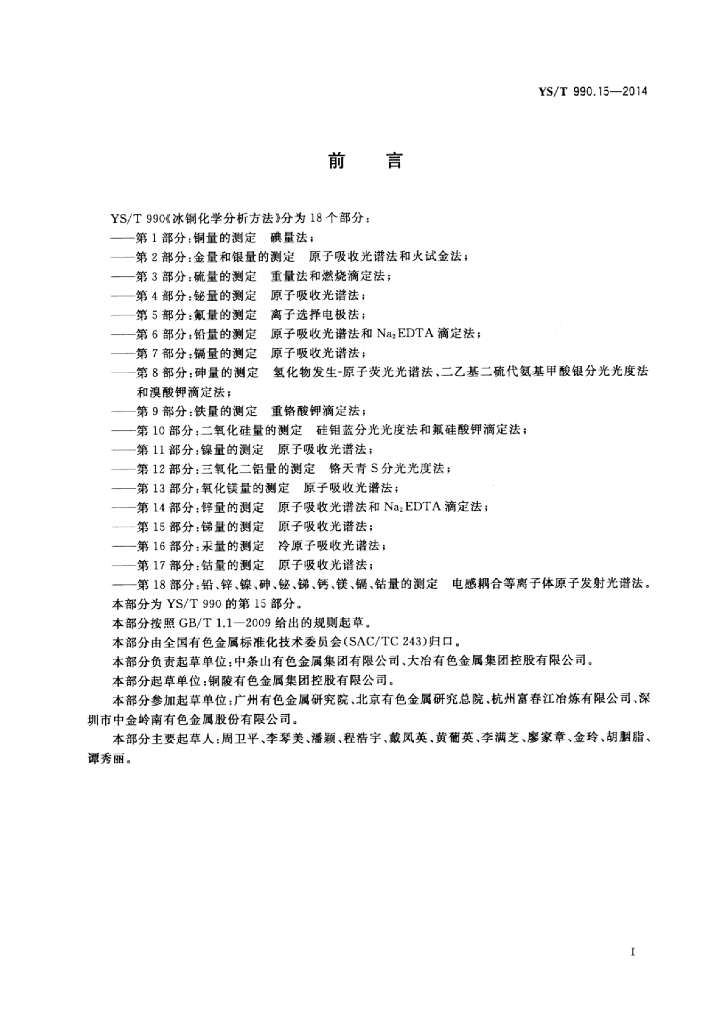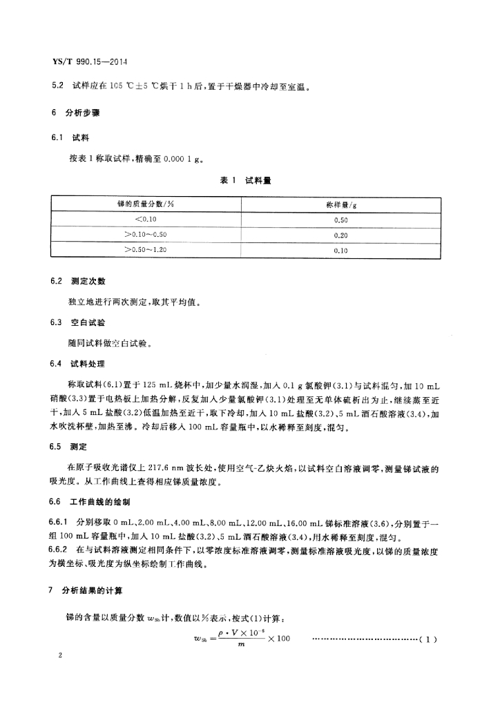 YS/T 990.15-2014 冰铜化学分析方法 第15部分:锑量的测定原子吸收光谱法