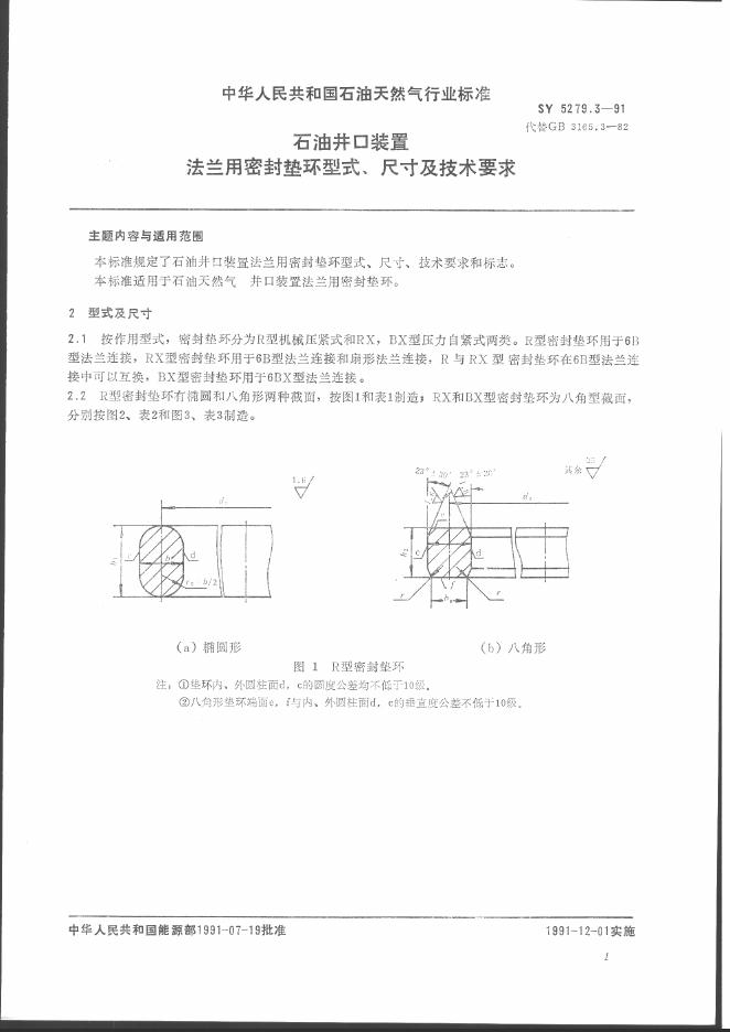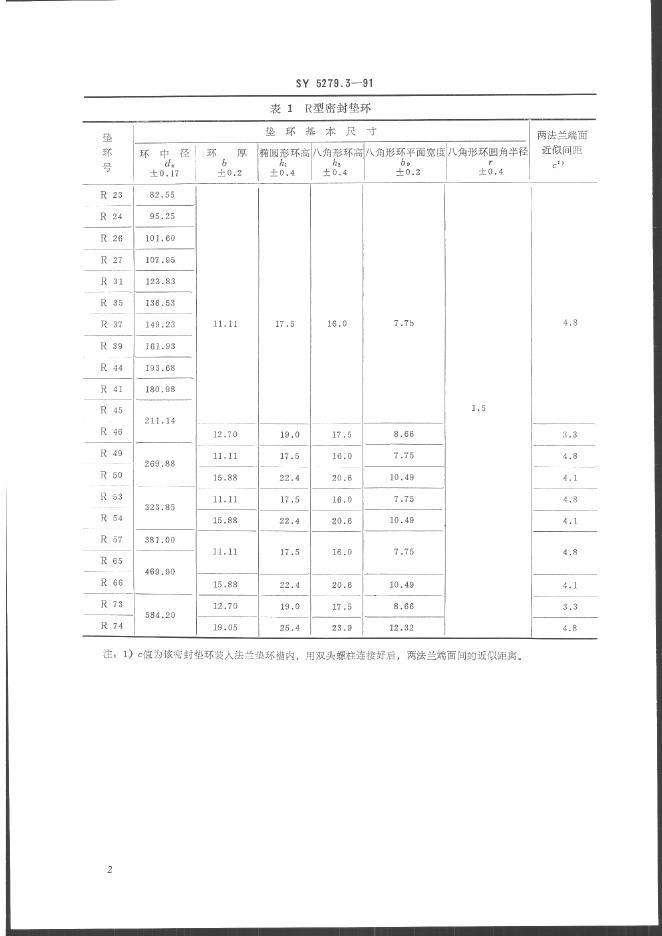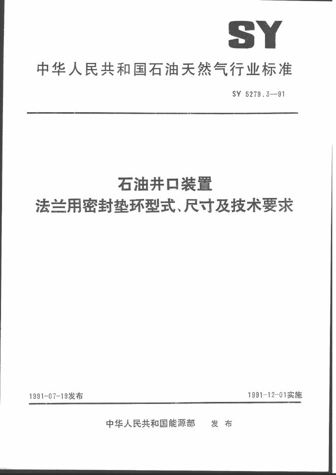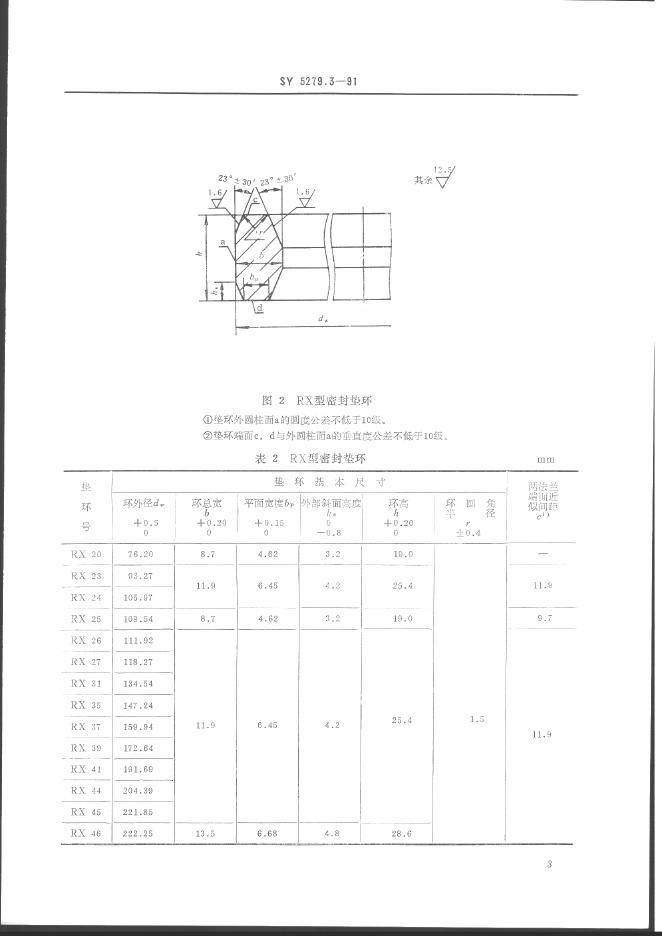 SY 5279.3-1991 石油井口装置 法兰密封垫环型式、尺寸及技术条件