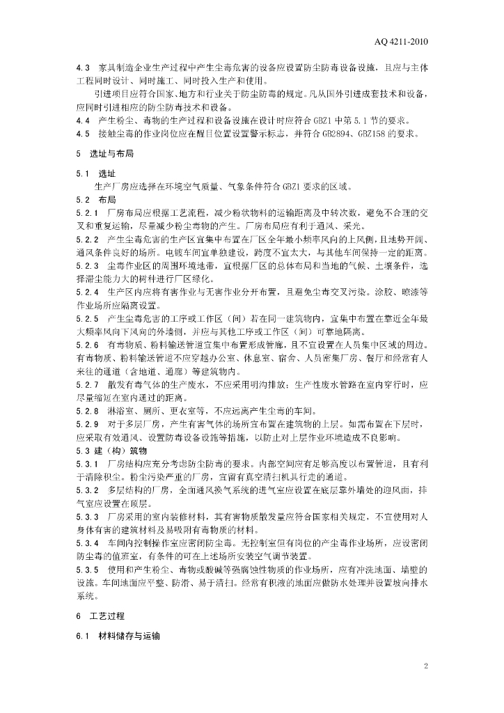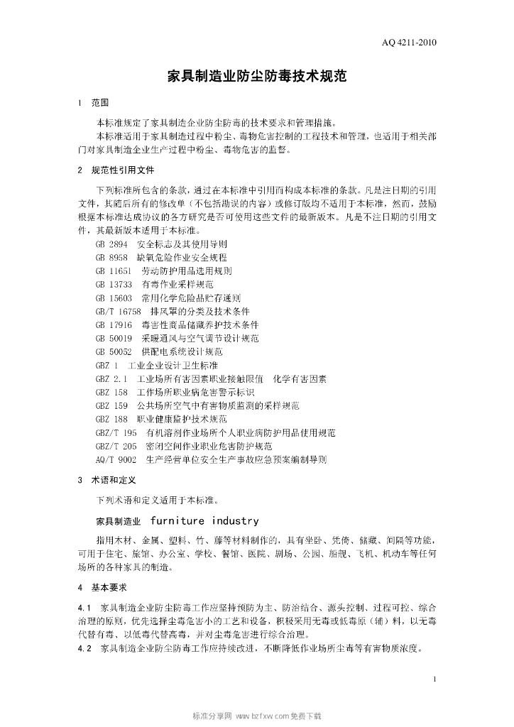 AQ 4211-2010 家具制造业防尘防毒技术规范
