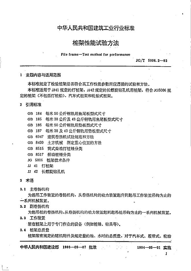 JG/T 5006.2-1993 桩架性能试验方法