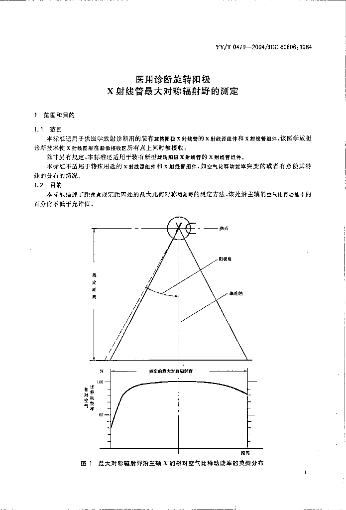 YY/T 0479-2004/IEC 60806 : 1984 医用诊断旋转阳极X射线管最大对称辐射野的测定
