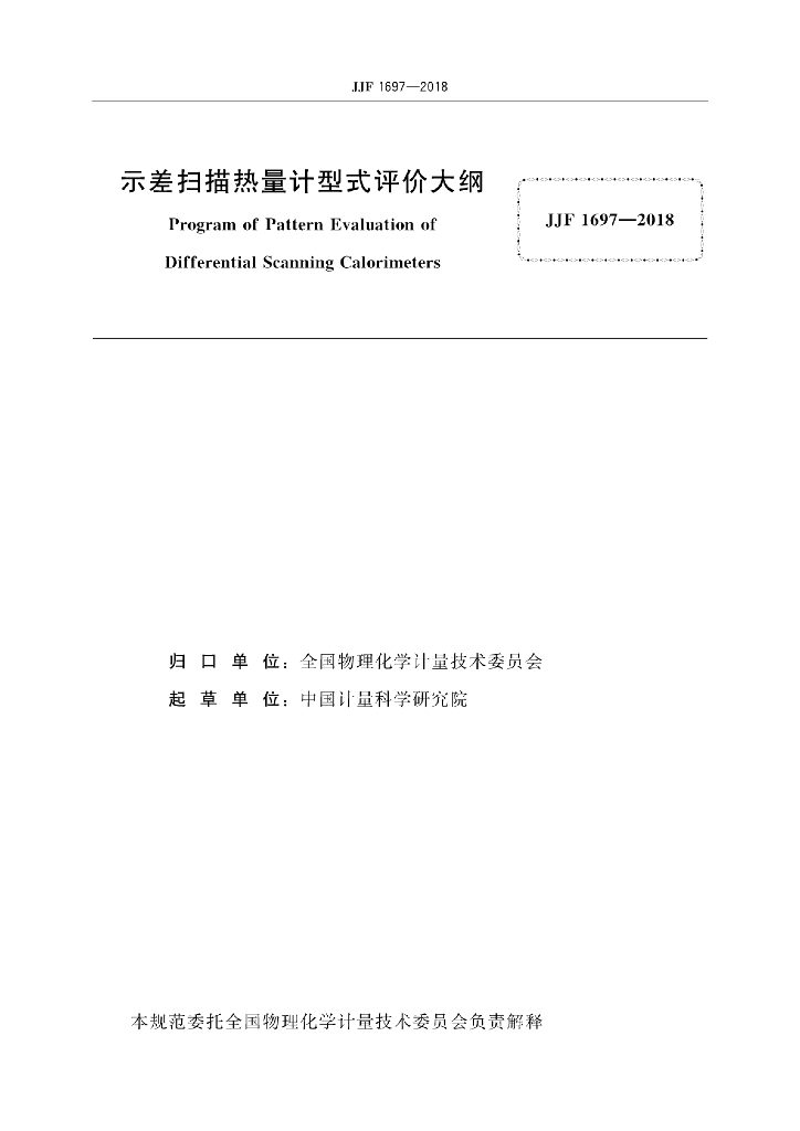 JJF 1697-2018 示差扫描热量计型式评价大纲