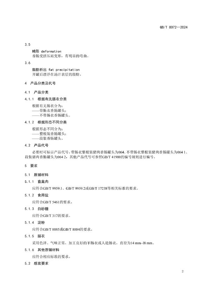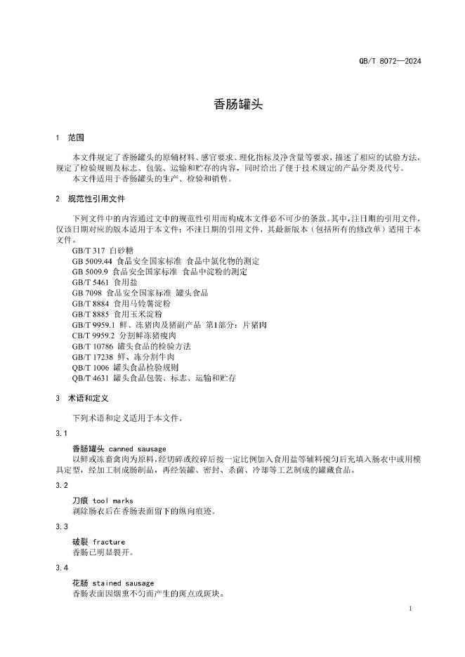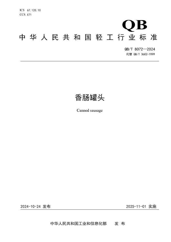 QB/T 8072-2024 香肠罐头