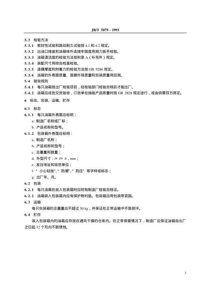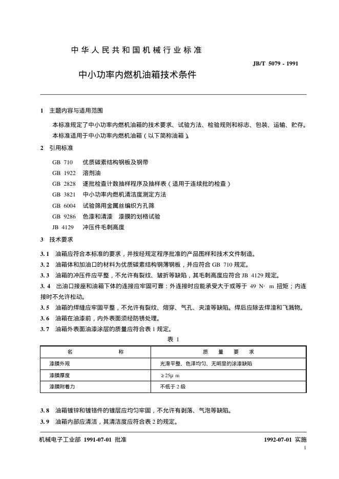 JB/T 5079-1991 中小功率内燃机油箱 技术条件