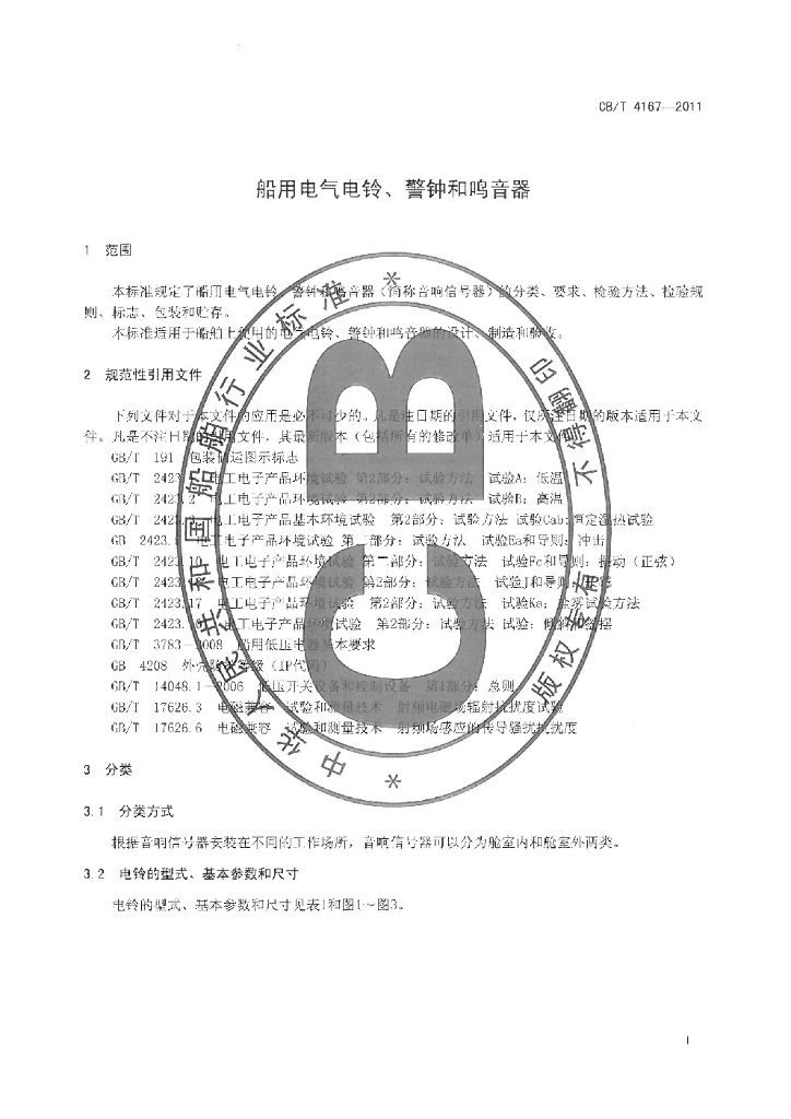 CB/T 4167-2011 船用电气电铃、警钟和鸣音器