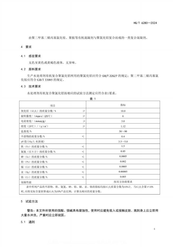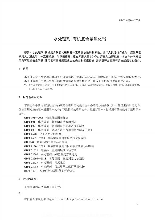 HG/T 6280-2024 水处理剂 有机复合聚氯化铝