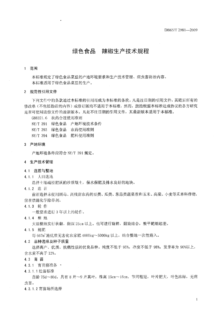 DB65/T 2981-2009 绿色食品 辣椒生产技术规程
