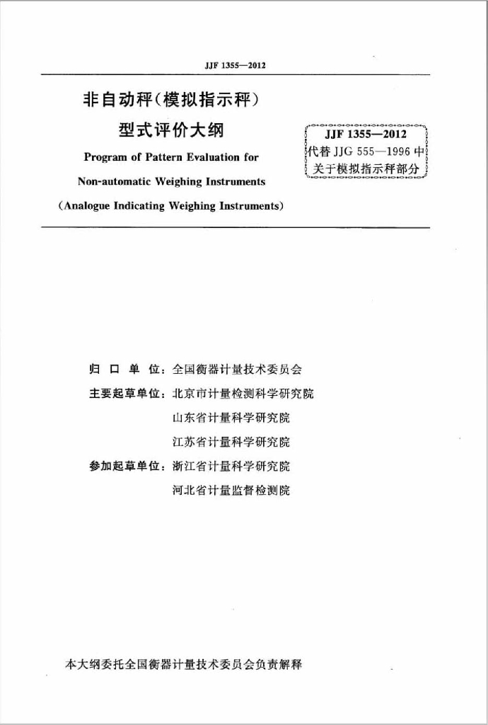 - 代替标准:JJG 555-1996