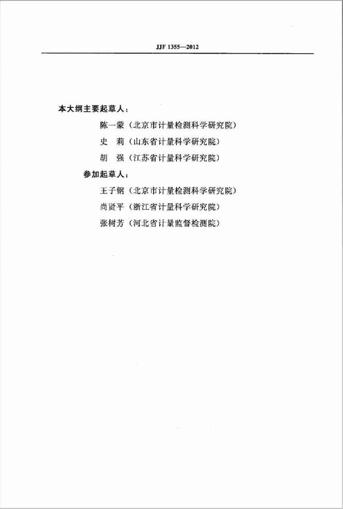 陈一蒙(北京市计量检测科学研究院)、史莉(山东省计量科学研究院)、胡强(江苏省计量科学研究院)、王子钢(北京市计量检测科学研究院)、尚贤平(浙江省计量科学研究院)、张树芳(河北省计量监督检测院)