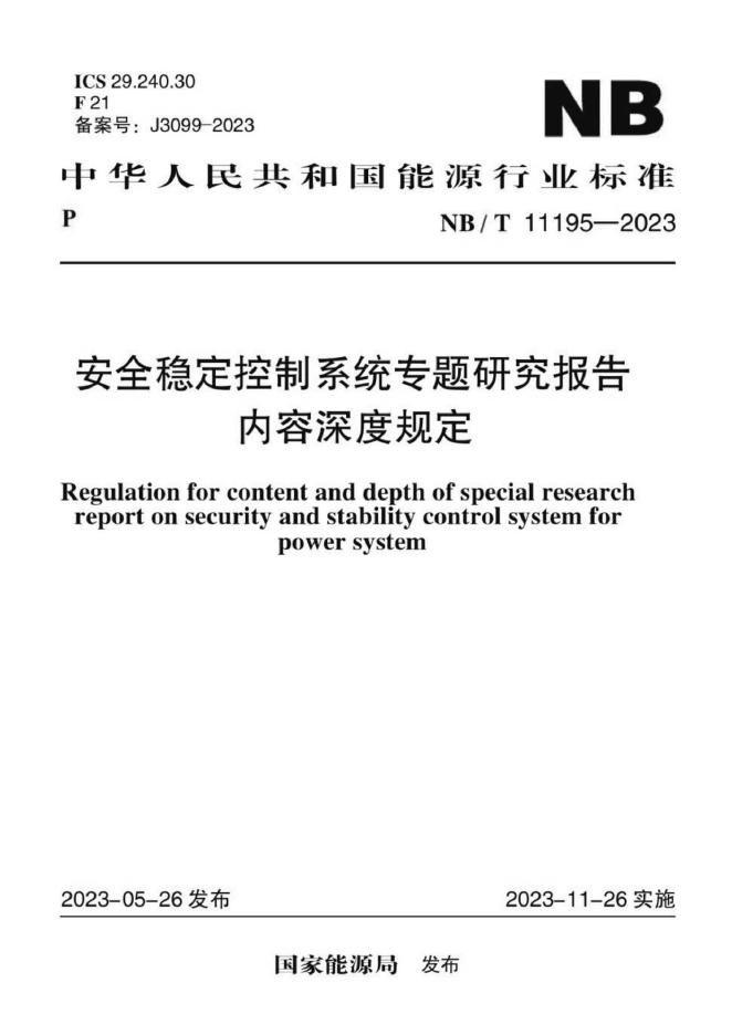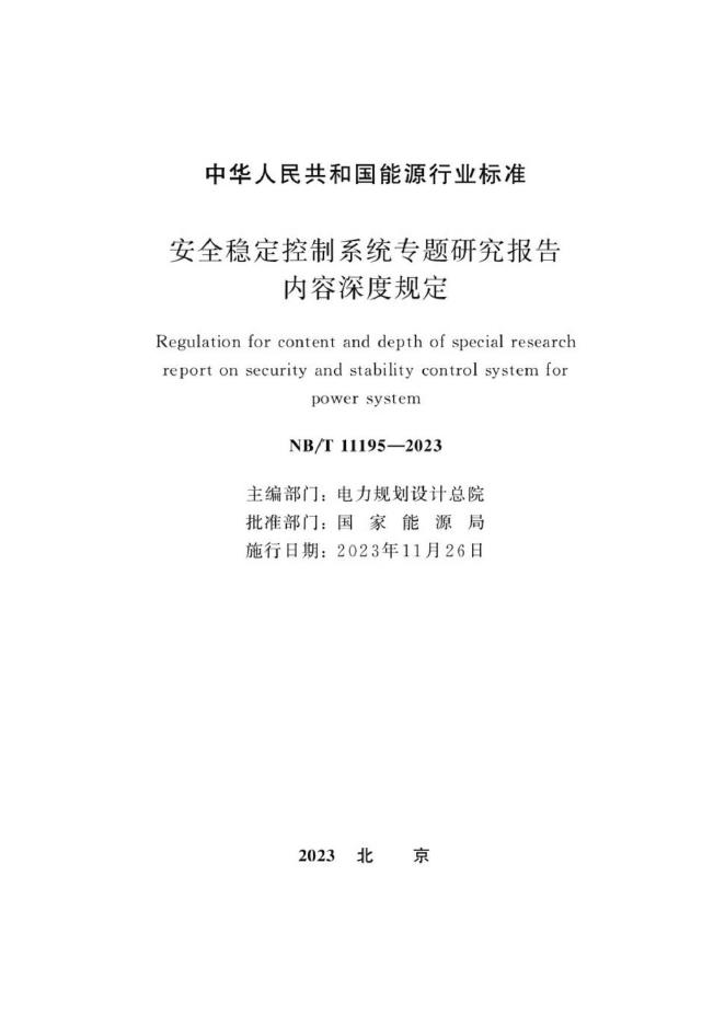 NB/T 11195-2023 安全稳定控制系统专题研究报告内容深度规定(附条文说明)