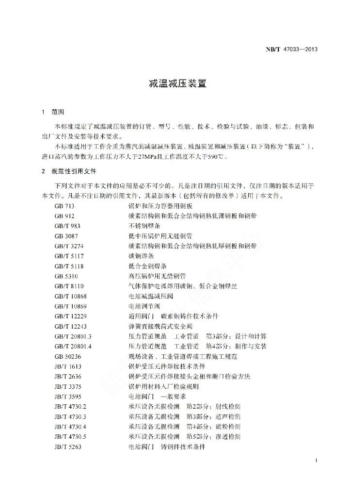 NB/T 47033-2013 减温减压装置