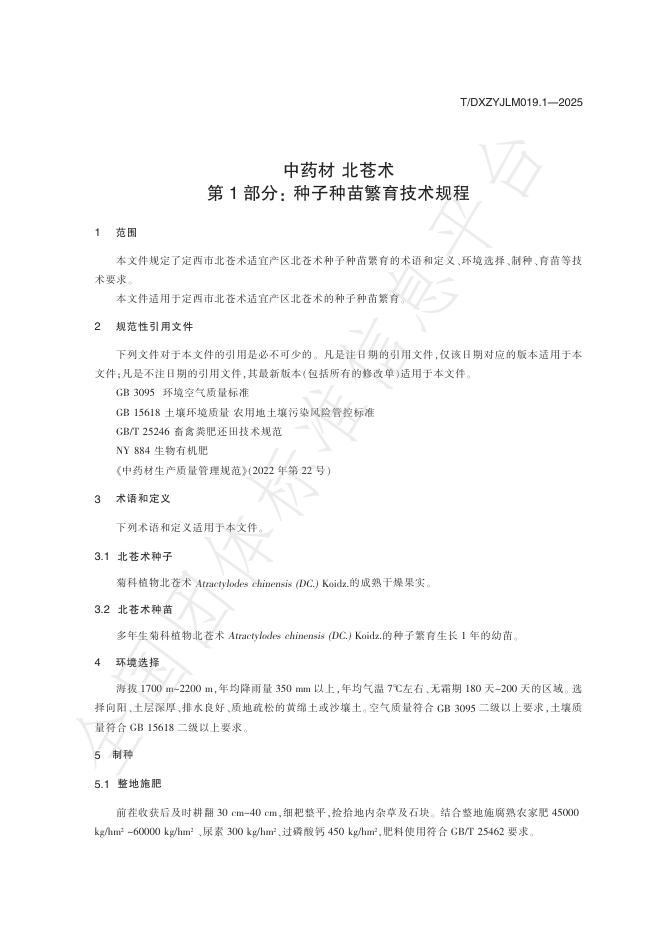 T/DXZYJLM 019.1-2025 中药材 北苍术 第1部分:种子种苗繁育技术规程