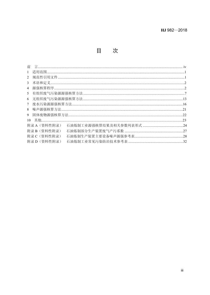 HJ 982-2018 污染源源强核算技术指南 石油炼制工业