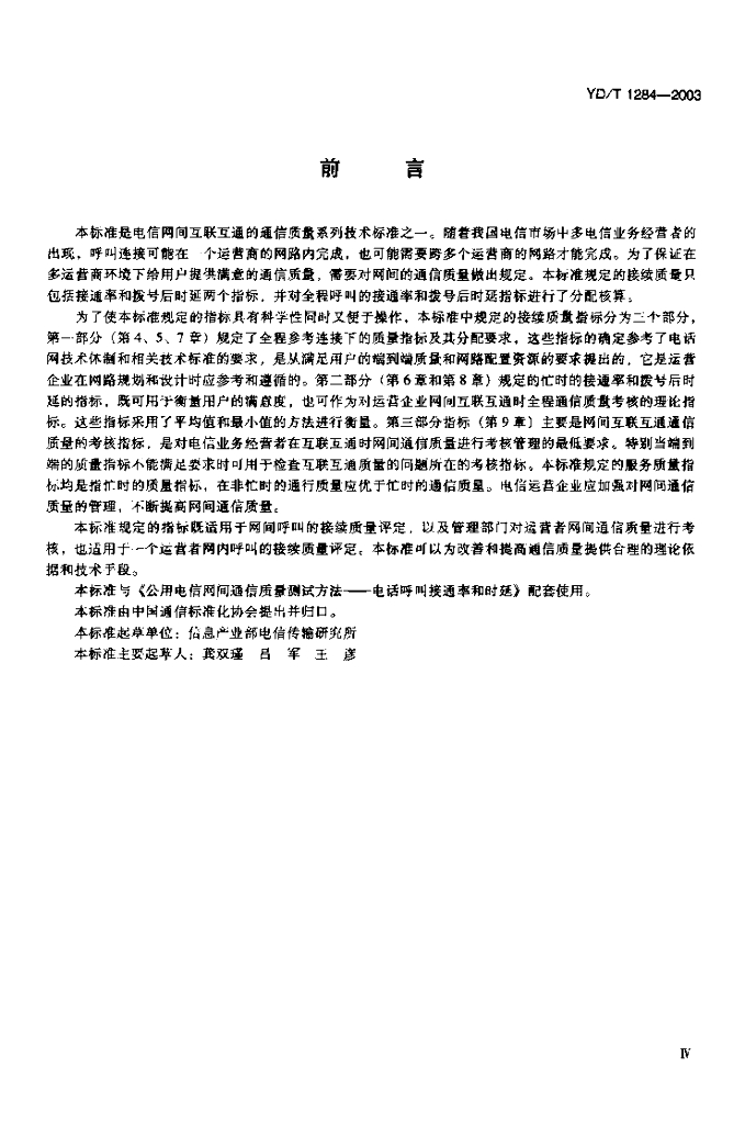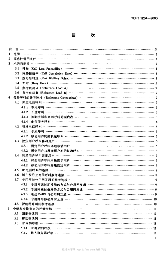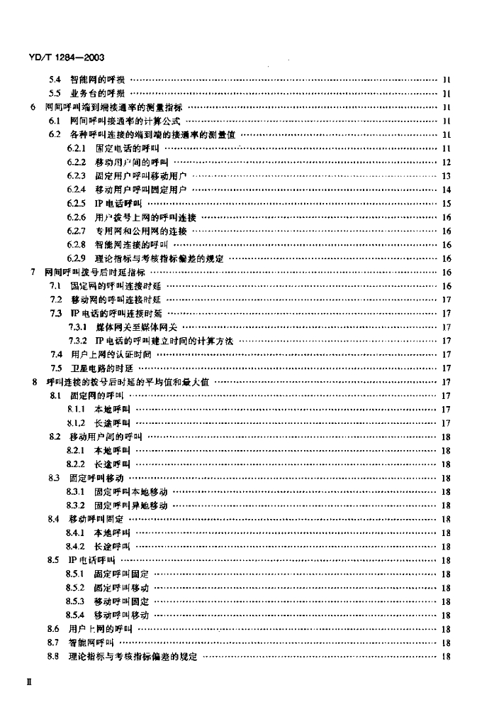 YD/T 1284-2003 公用电信网间通信质量技术要求——电话呼叫的接通率和拨号后时延