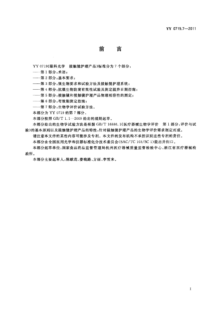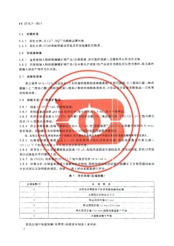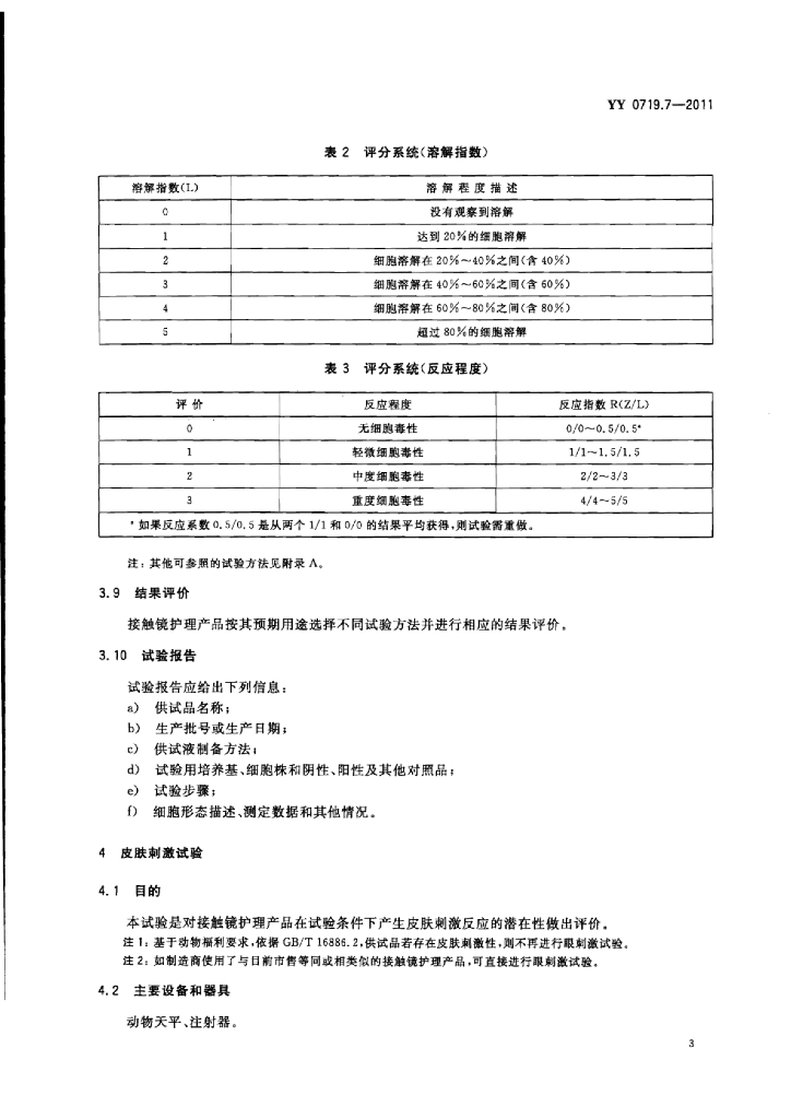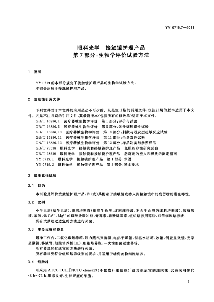 YY 0719.7-2011 眼科光学接触镜护理产品 第7部分:生物学评价试验方法