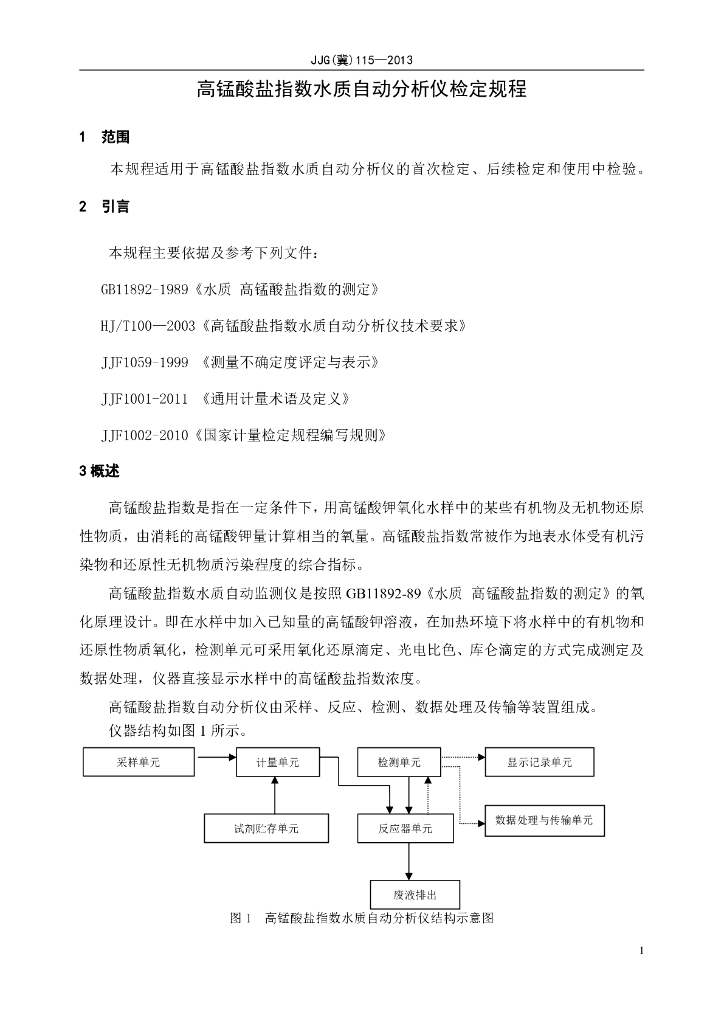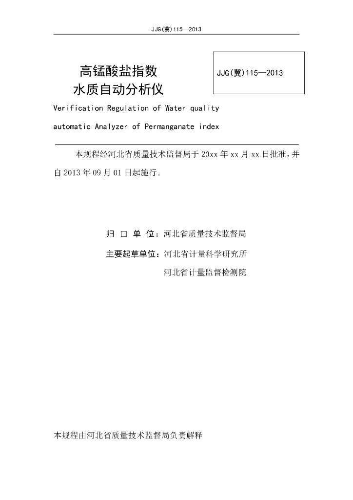 JJG(冀)115-2013 高锰酸盐指数水质自动分析仪检定规程