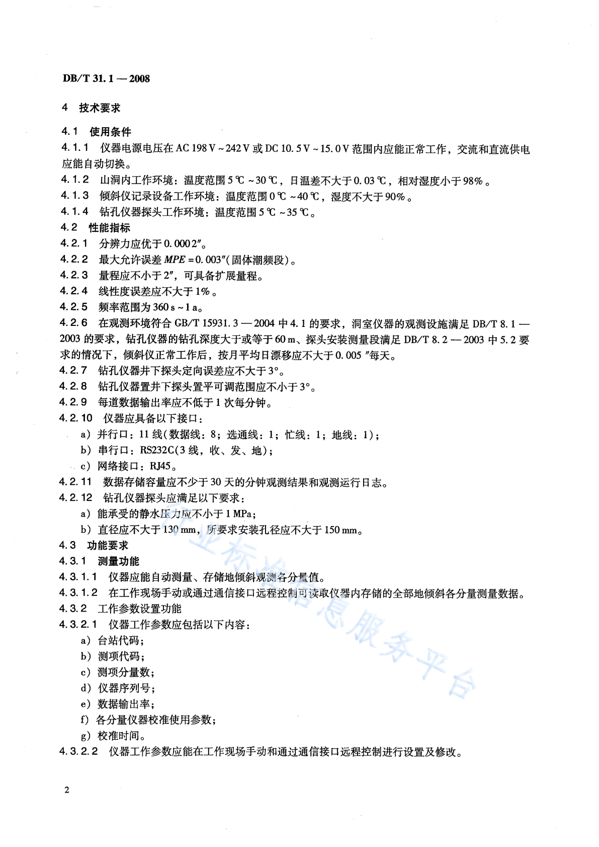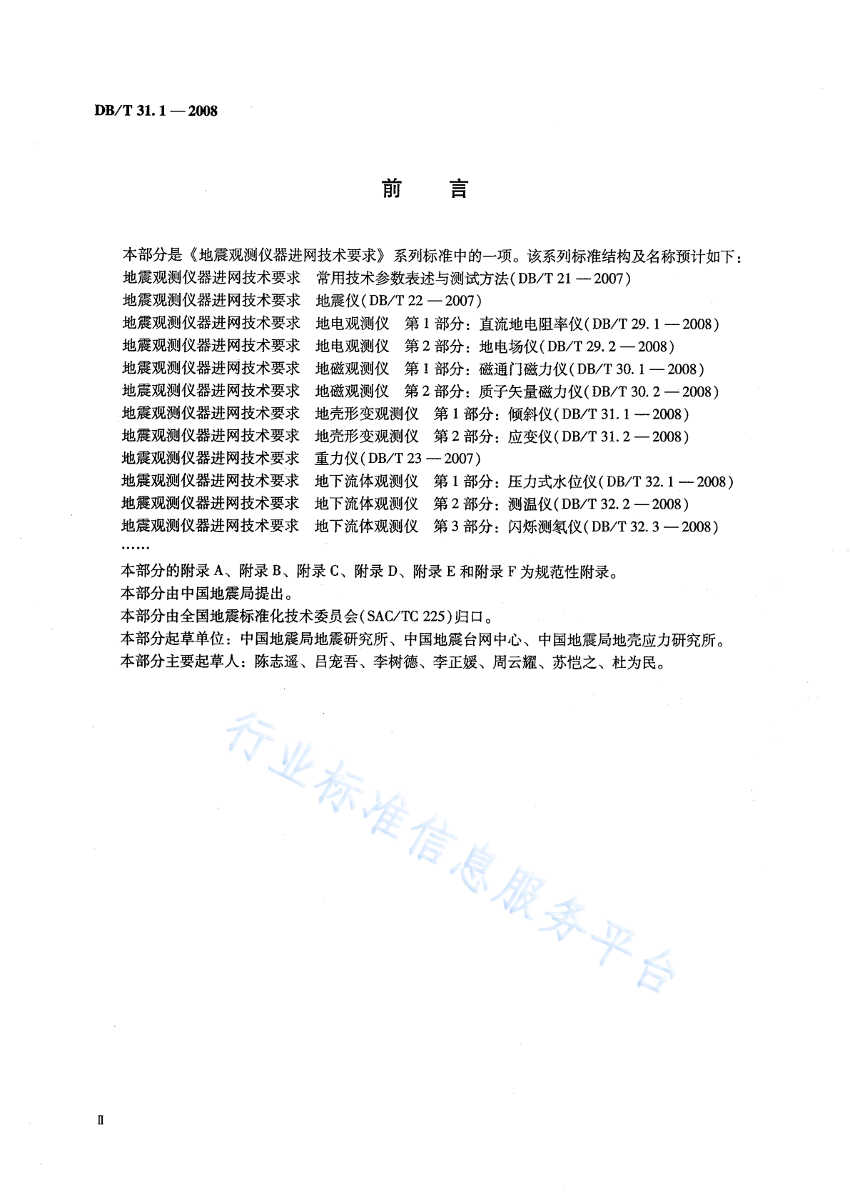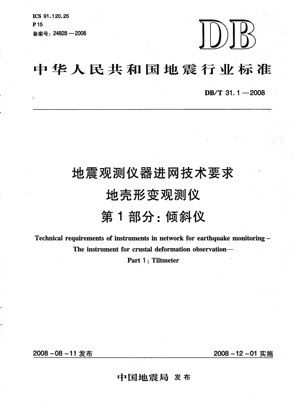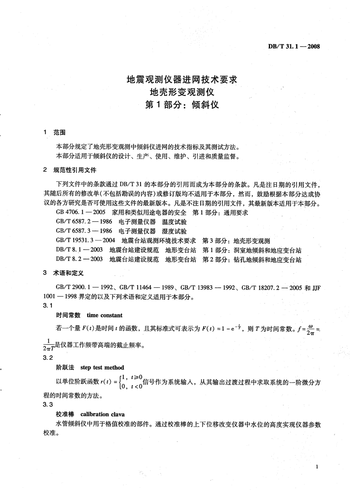 DB/T 31.1-2008 地震观测仪器进网技术要求 地壳形变观测仪 第1部分:倾斜仪