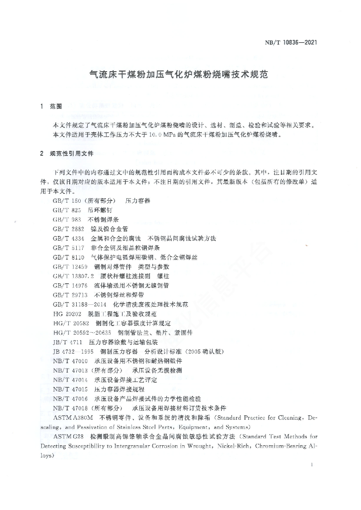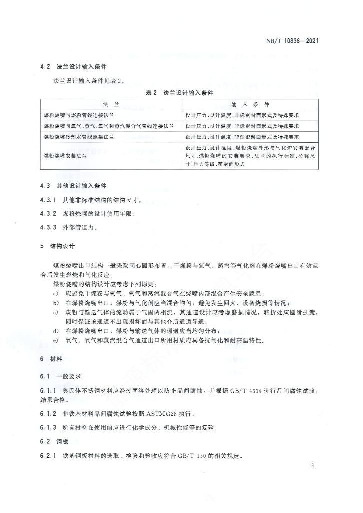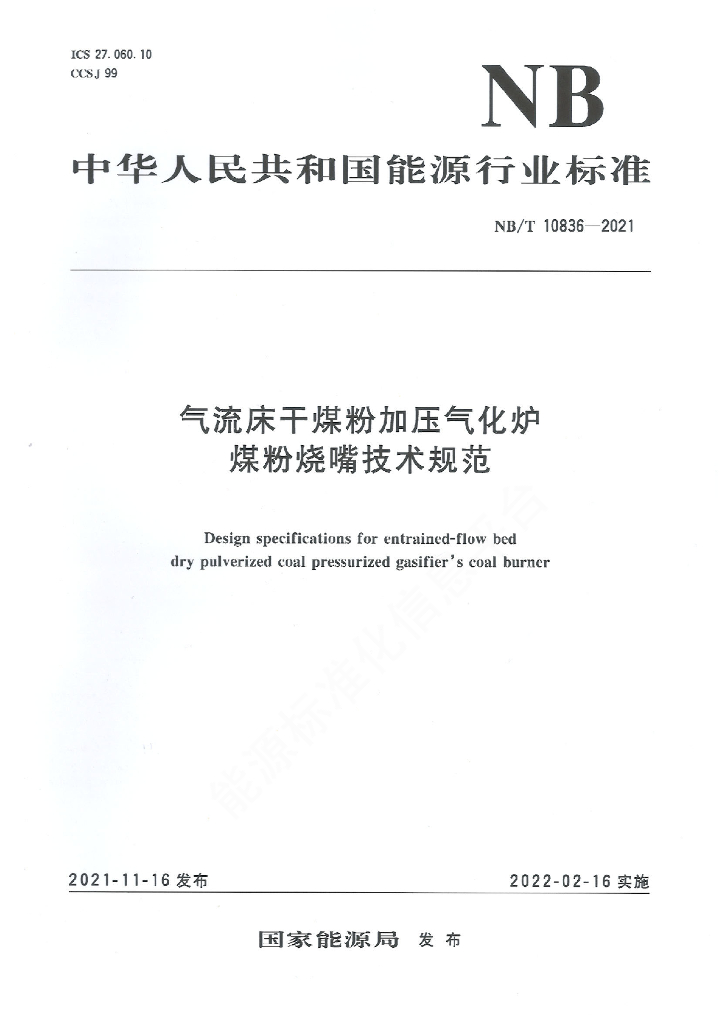 NB/T 10836-2021 气流床干煤粉加压气化炉煤粉烧嘴技术规范