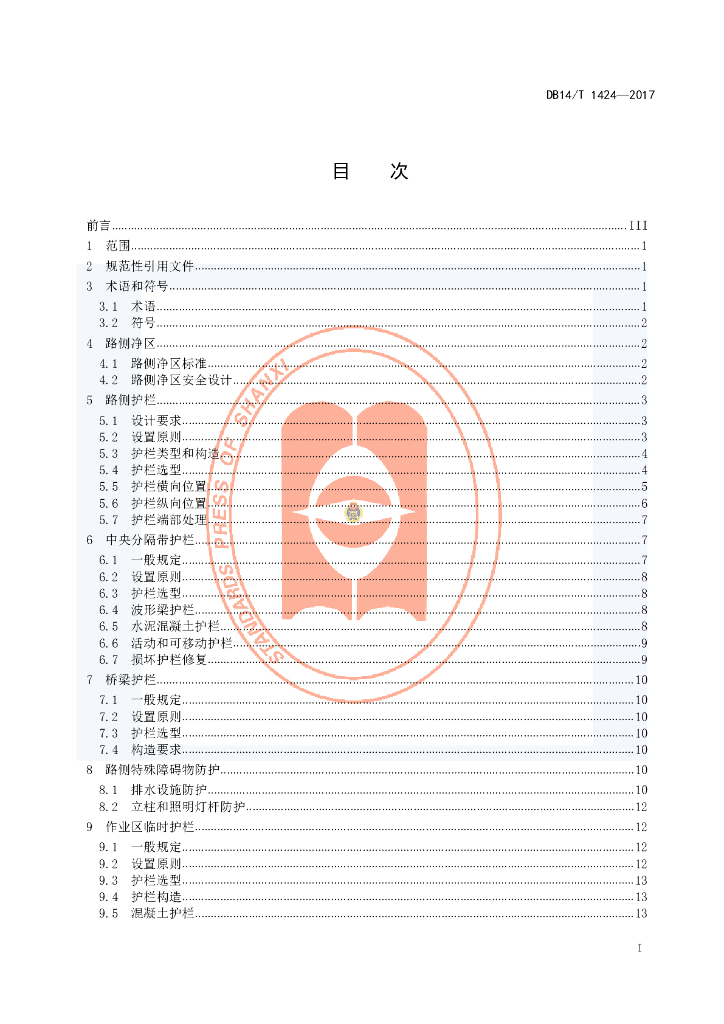 DB14/T 1424-2017 高速公路路侧安全设计指南