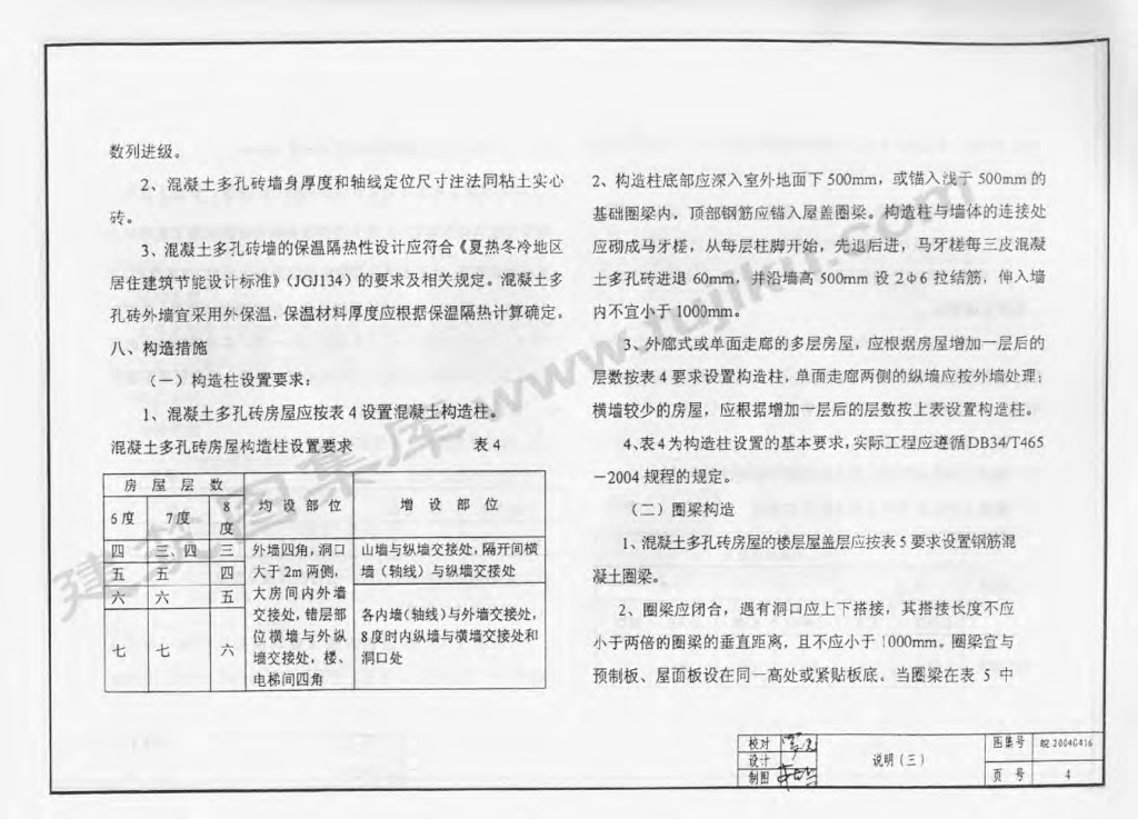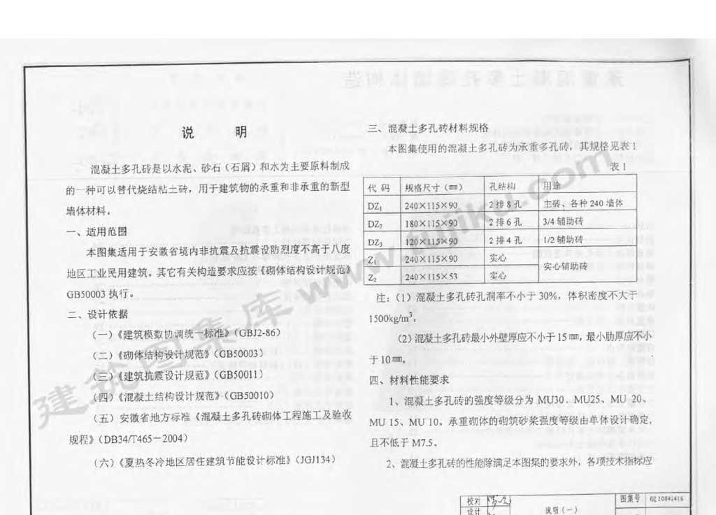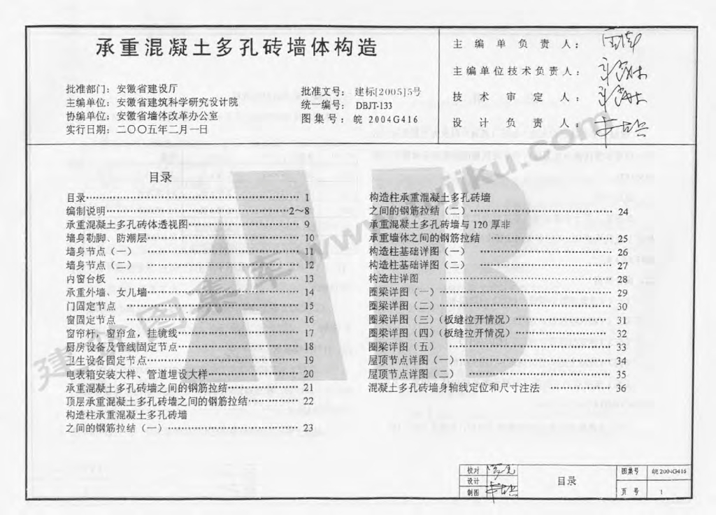 皖2004G416 承重混凝土多孔砖墙体构造图集