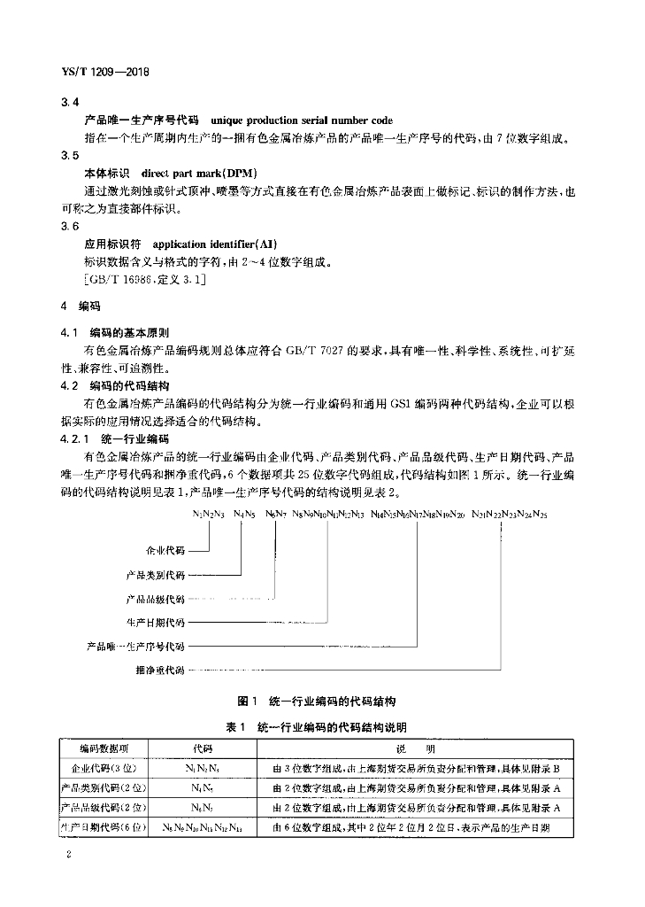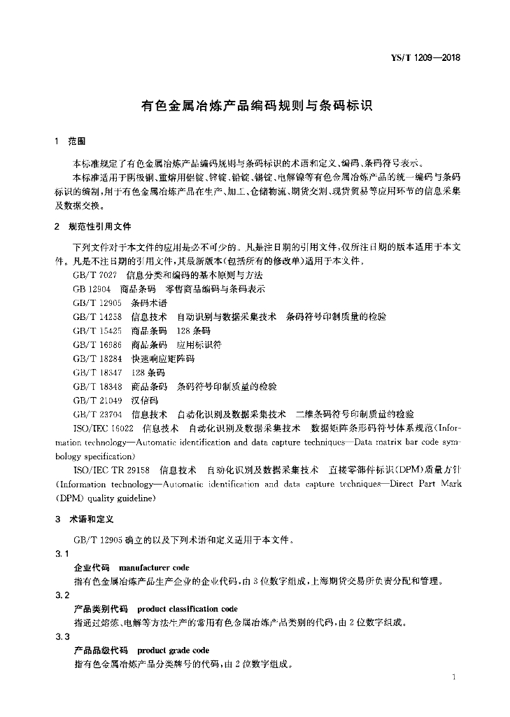 YS/T 1209-2018 有色金属冶炼产品编码规则与条码标识