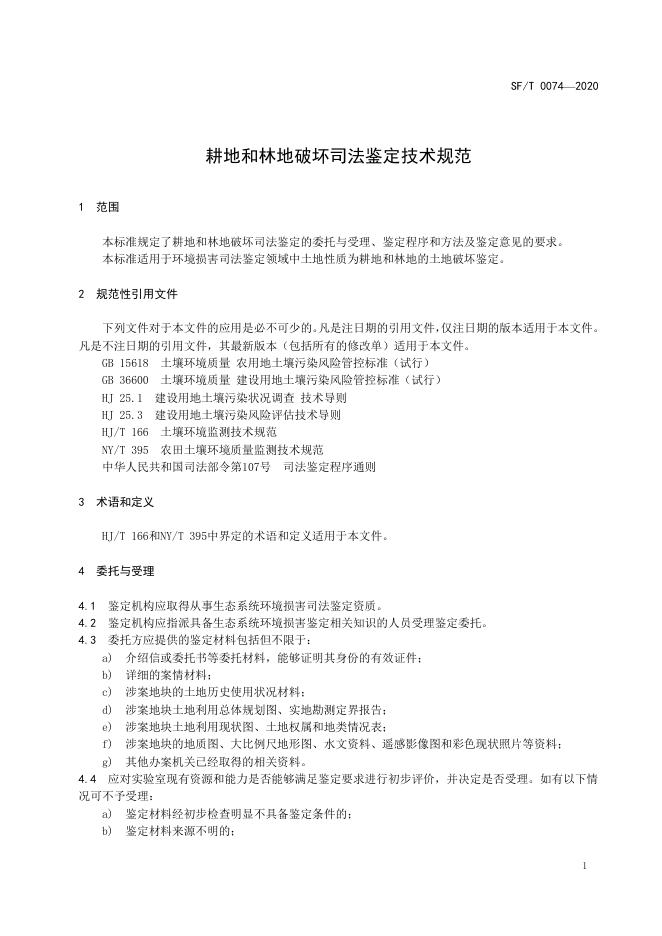 SF/T 0074-2020 耕地和林地破坏司法鉴定技术规范
