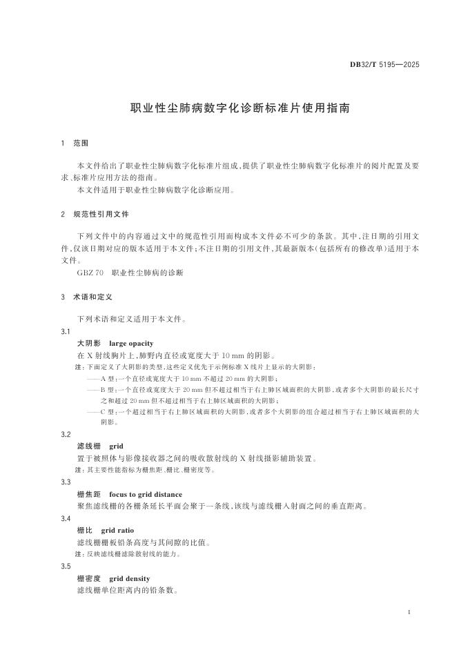 DB32/T 5195-2025 职业性尘肺病数字化诊断标准片使用指南